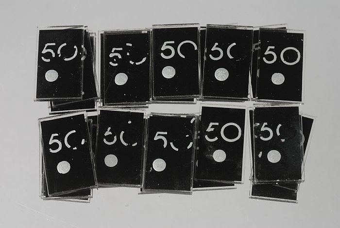 Getal ".50", zilver op glas op zwarte of doorzichtig...