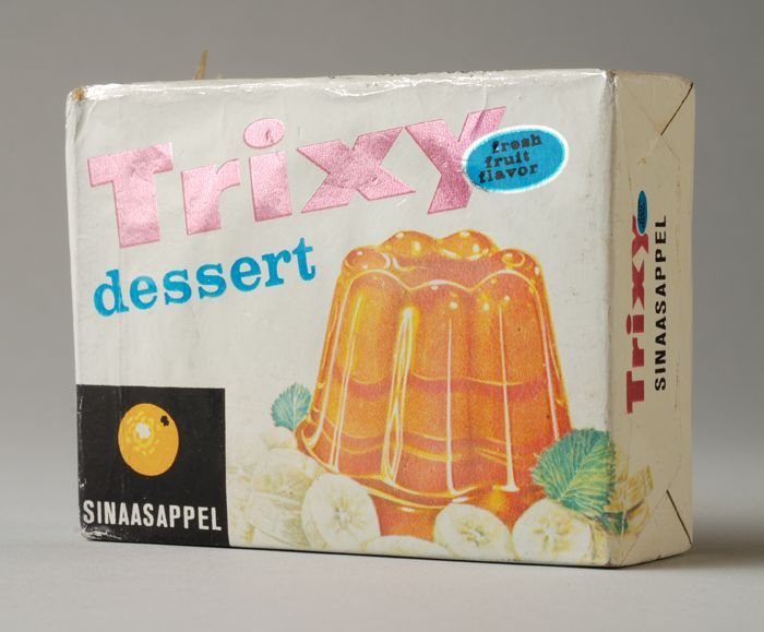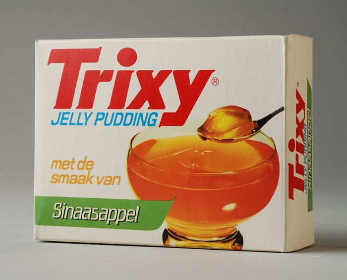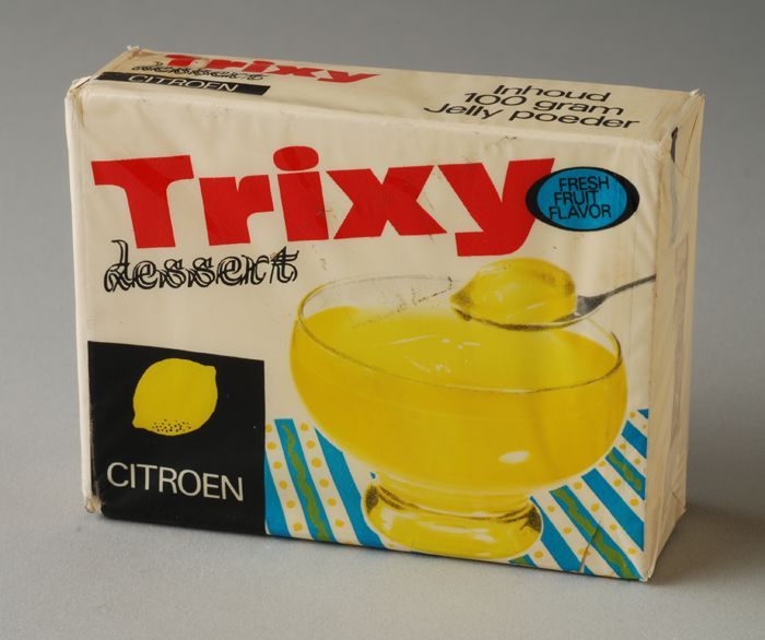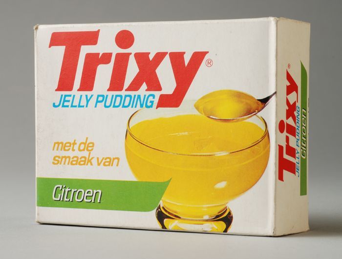 Wit, kartonnen pak TRIXY jelly pudding, citroen, 94 ...