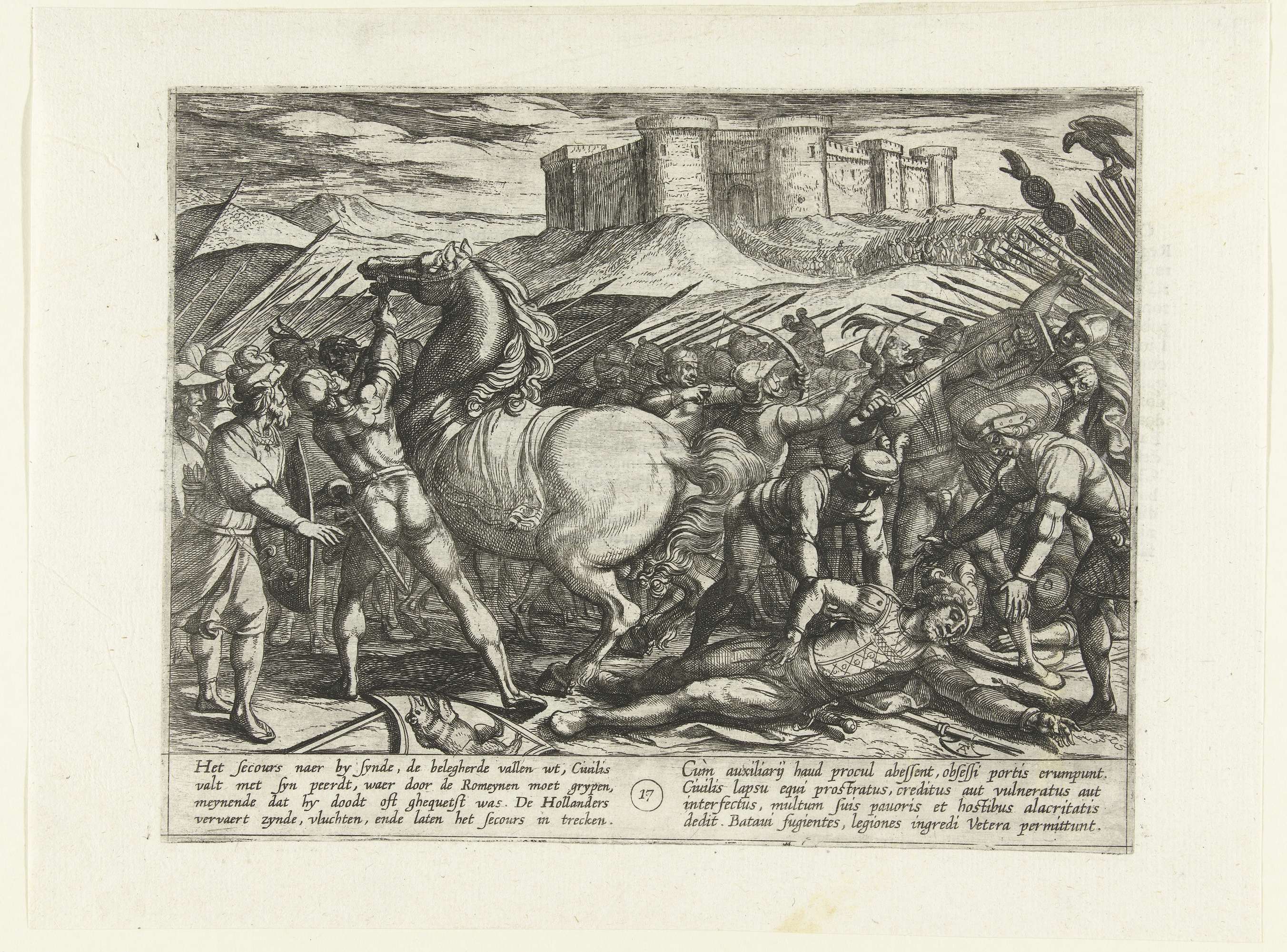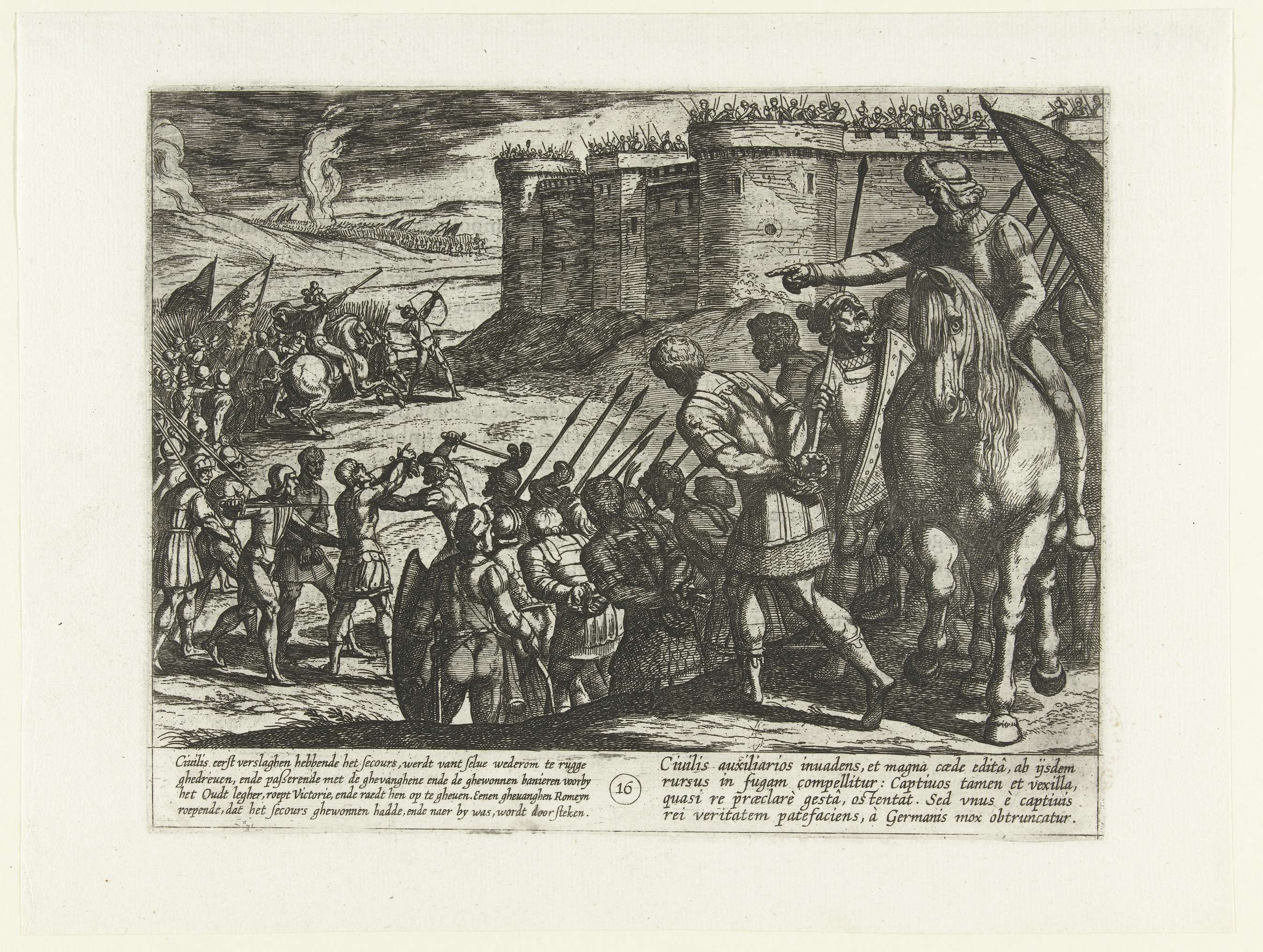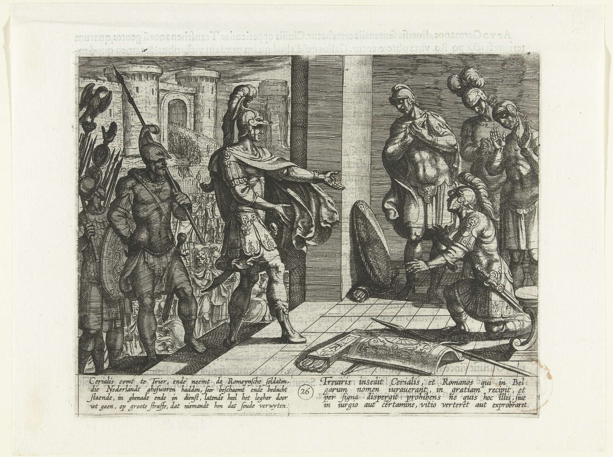 Uitgeputte Romeinse soldaten smeken Civilis om genad...