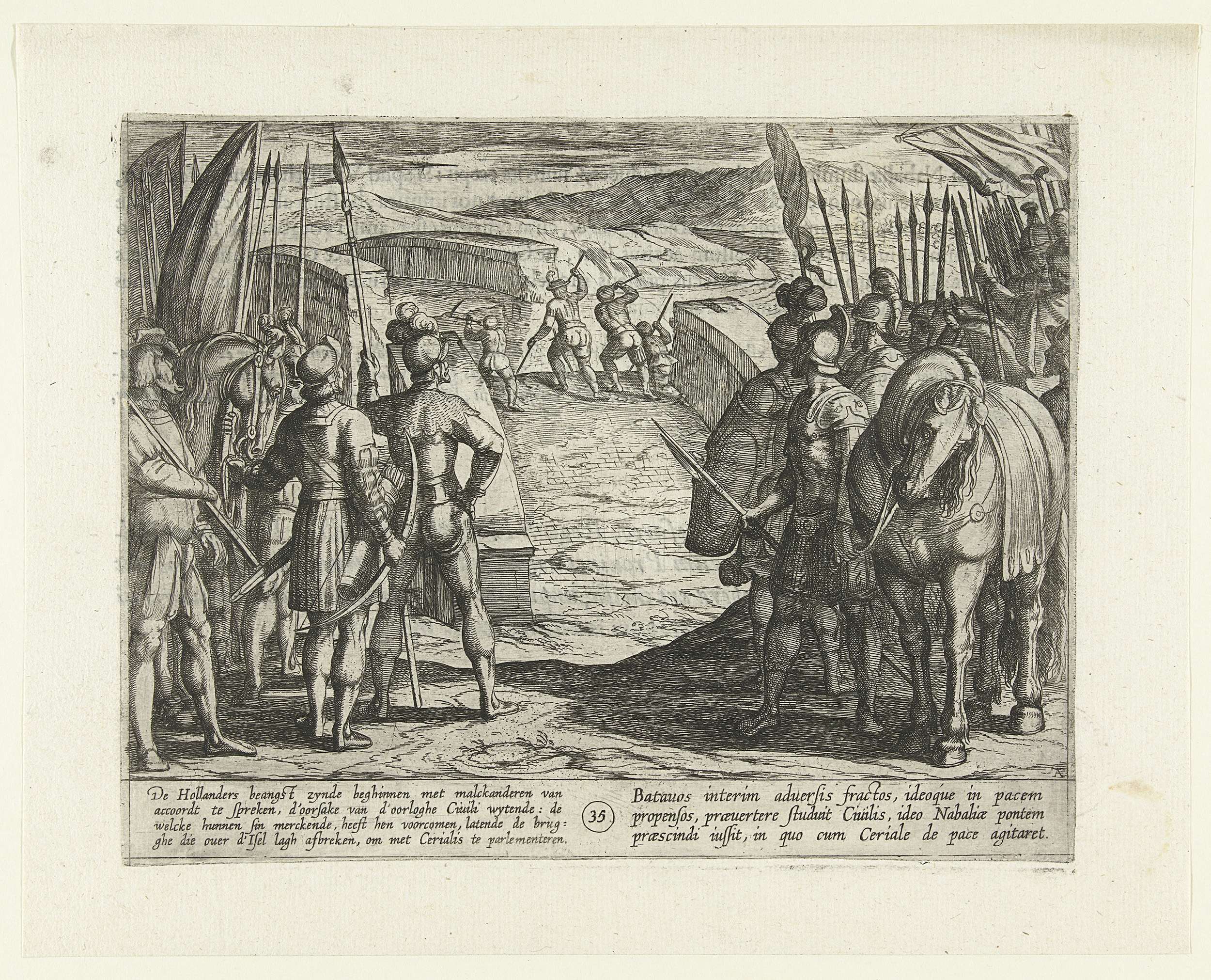 Civilis en Cerialis onderhandelen op de afgebroken b...