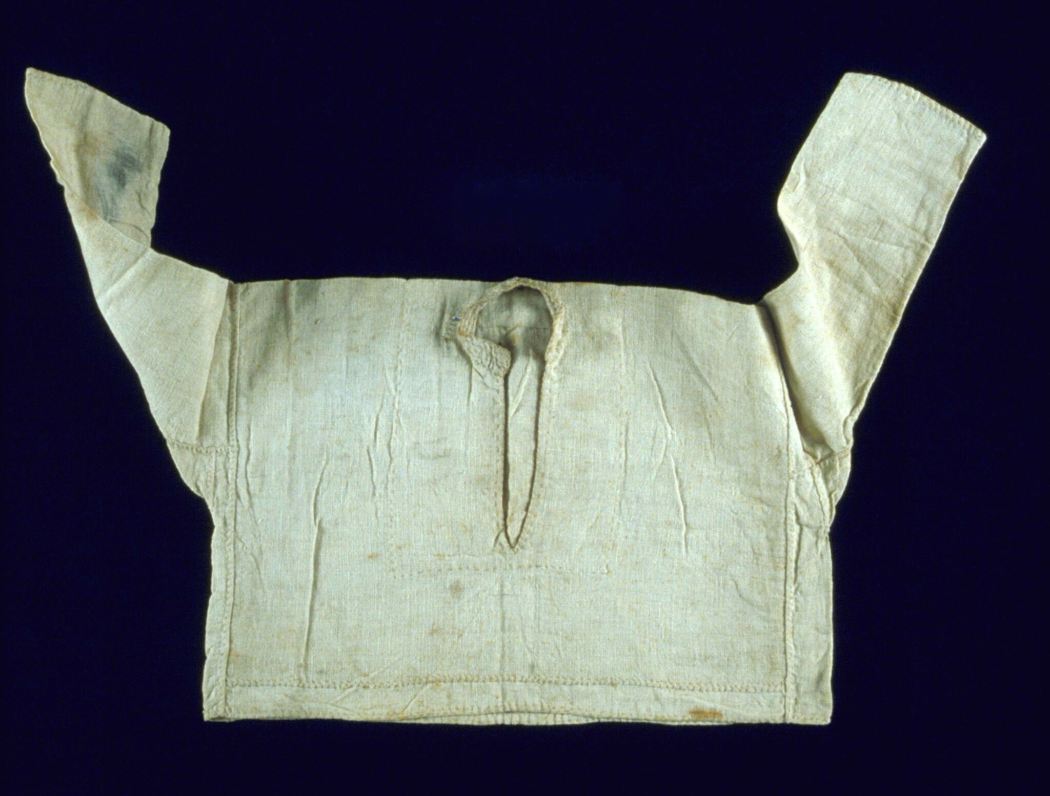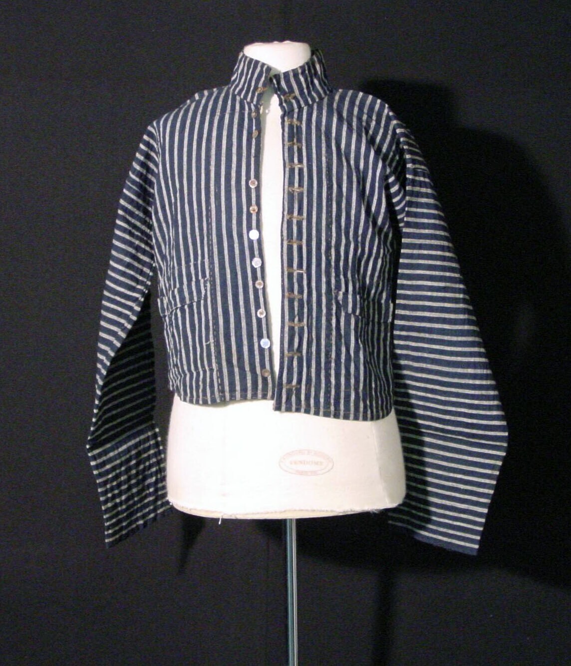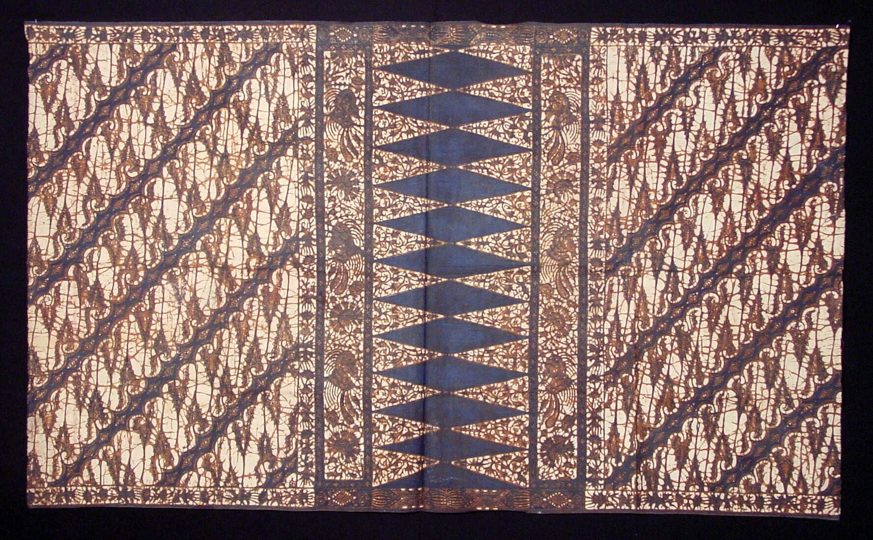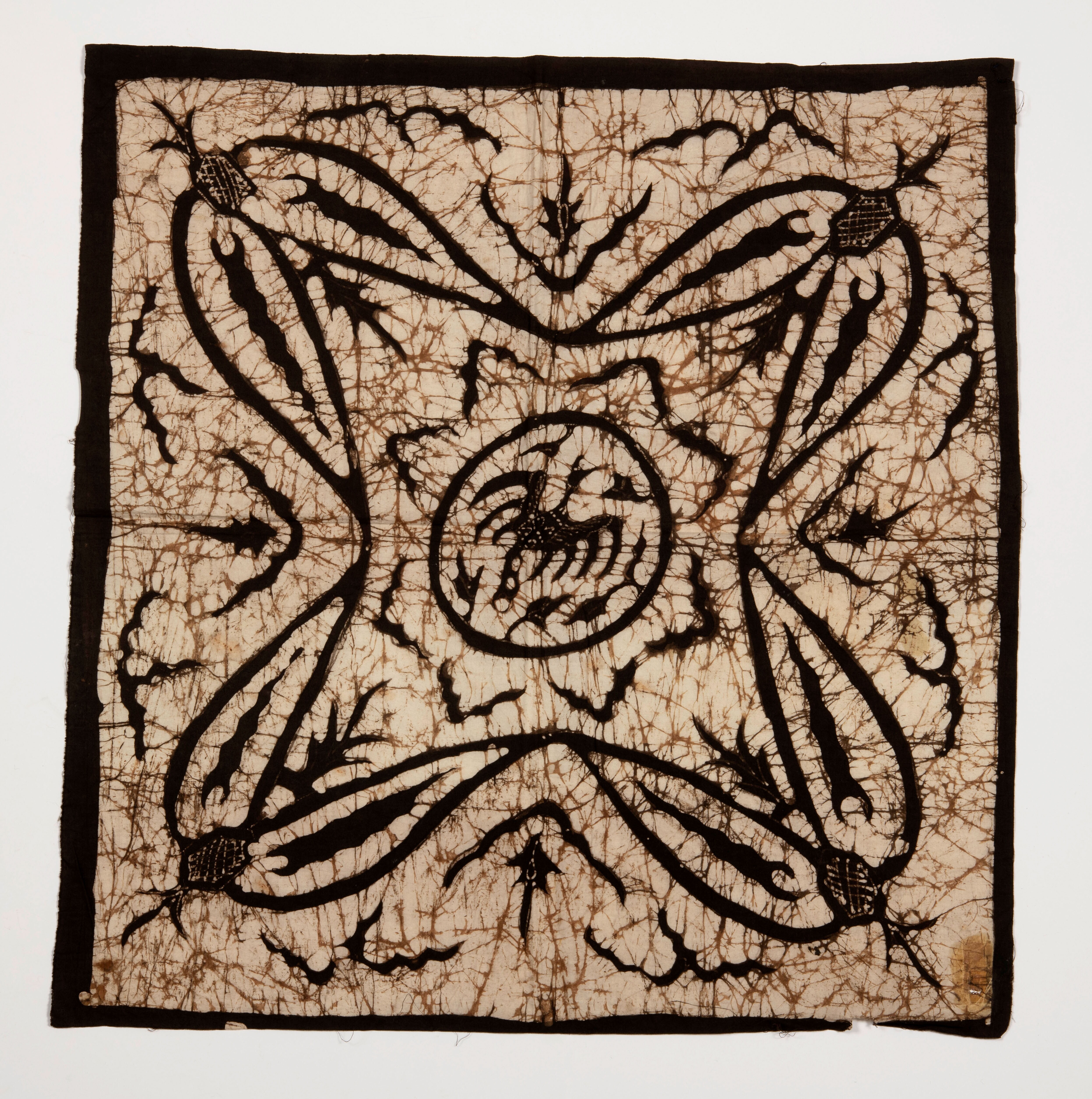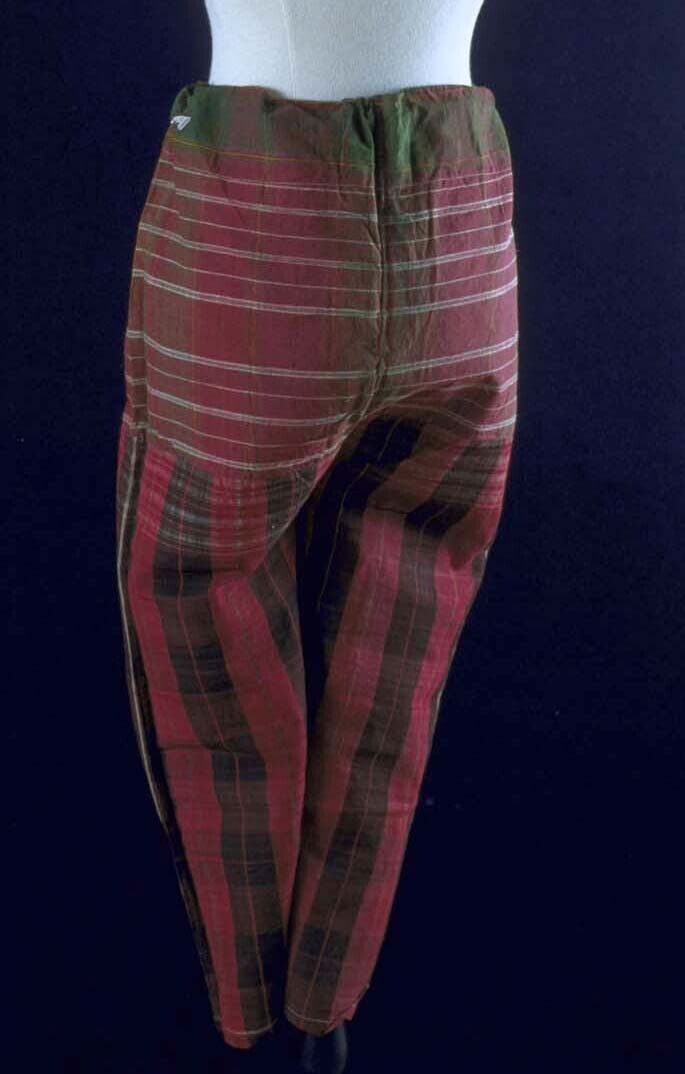 Gebatikt jongensbroek, met plantenmotieven versierd