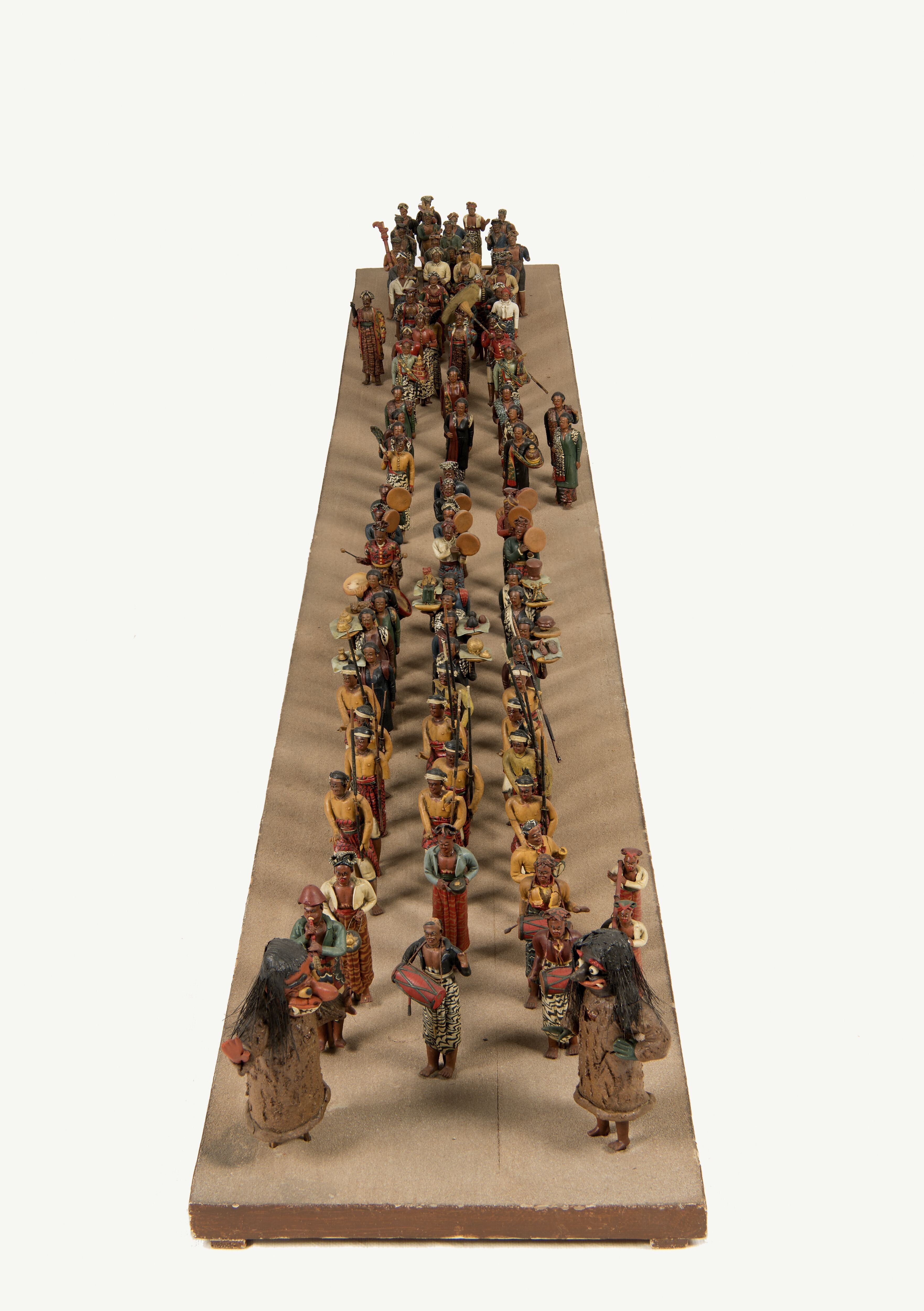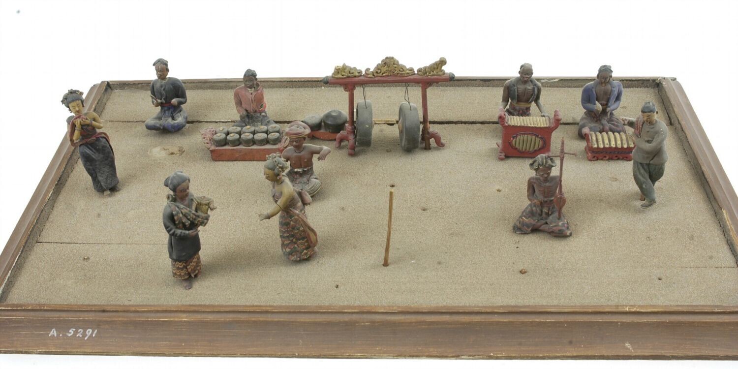 Fantasie Indo-Javaans zwart aardewerk beeld, voorste...