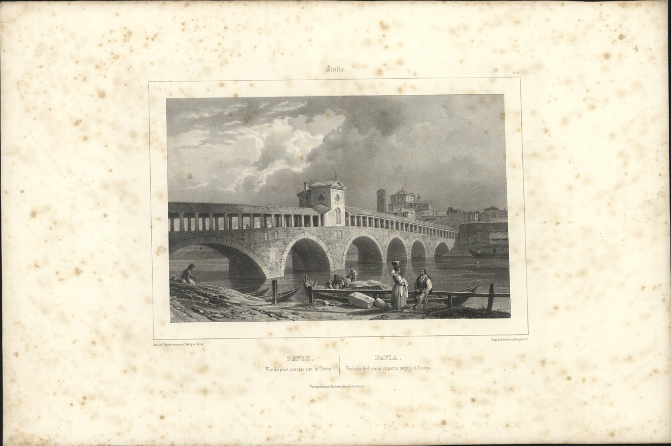 Pavie. / Vue du pont couvert sur le Tésin.