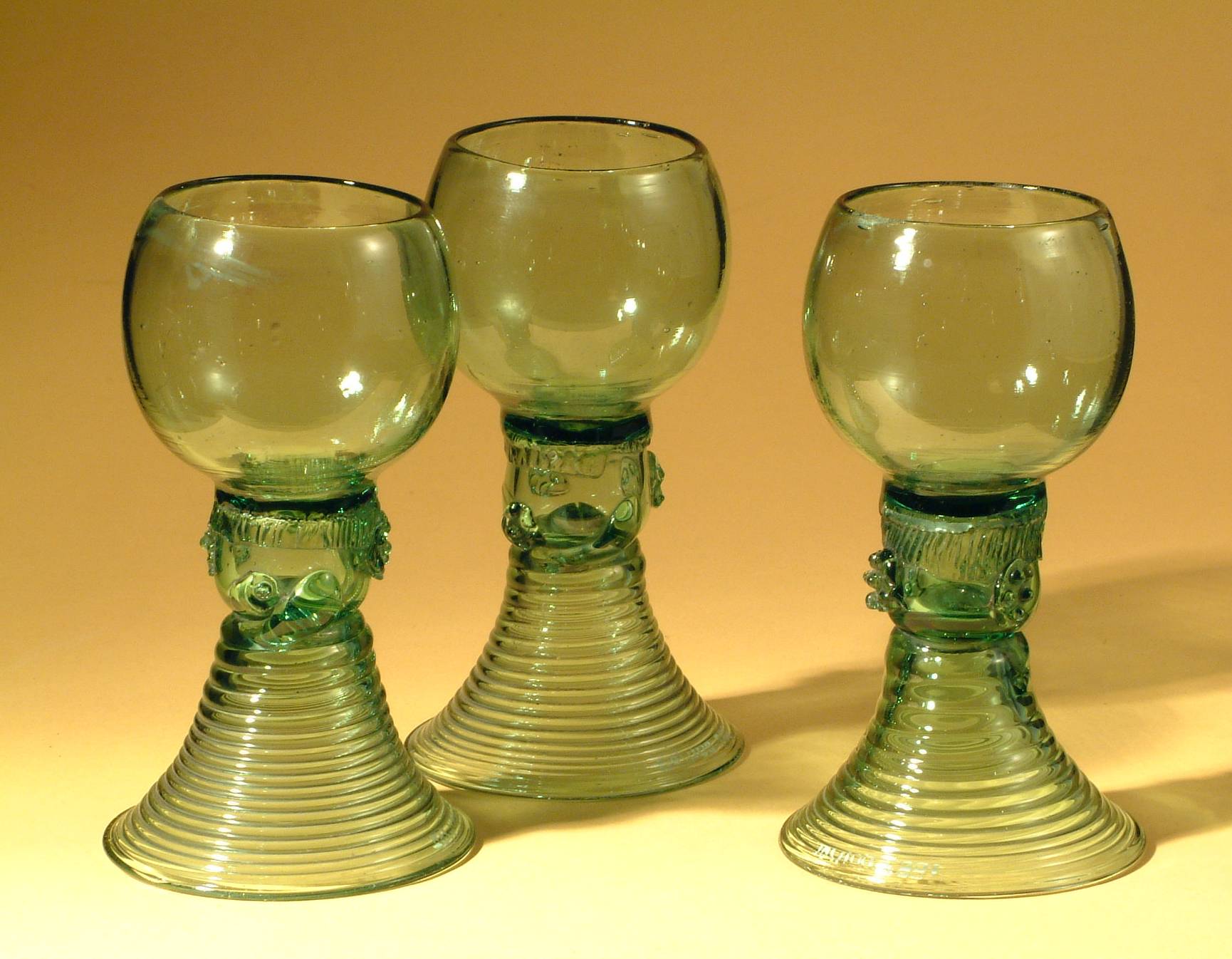 2 paarse roemers, doorlopende kelk, op de stam 4 bra...