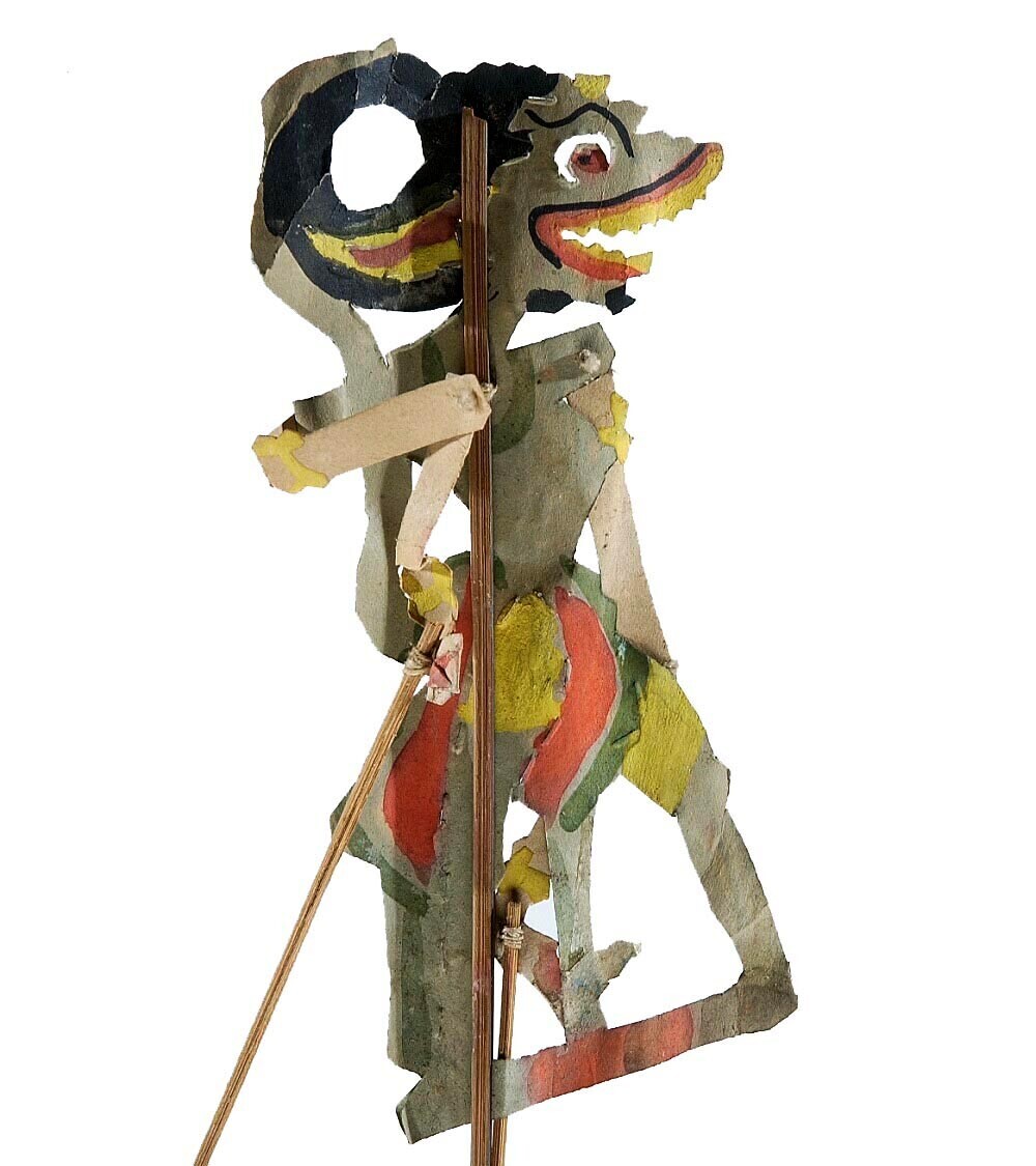 Gekleurde papieren wajangpop, mogelijk Petruk, behor...