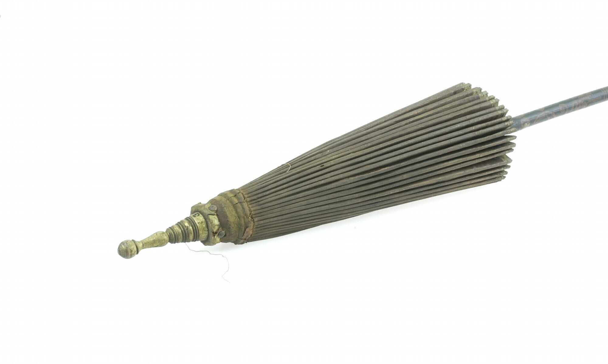 Bezem van kokosbladnerven aan een houten steel