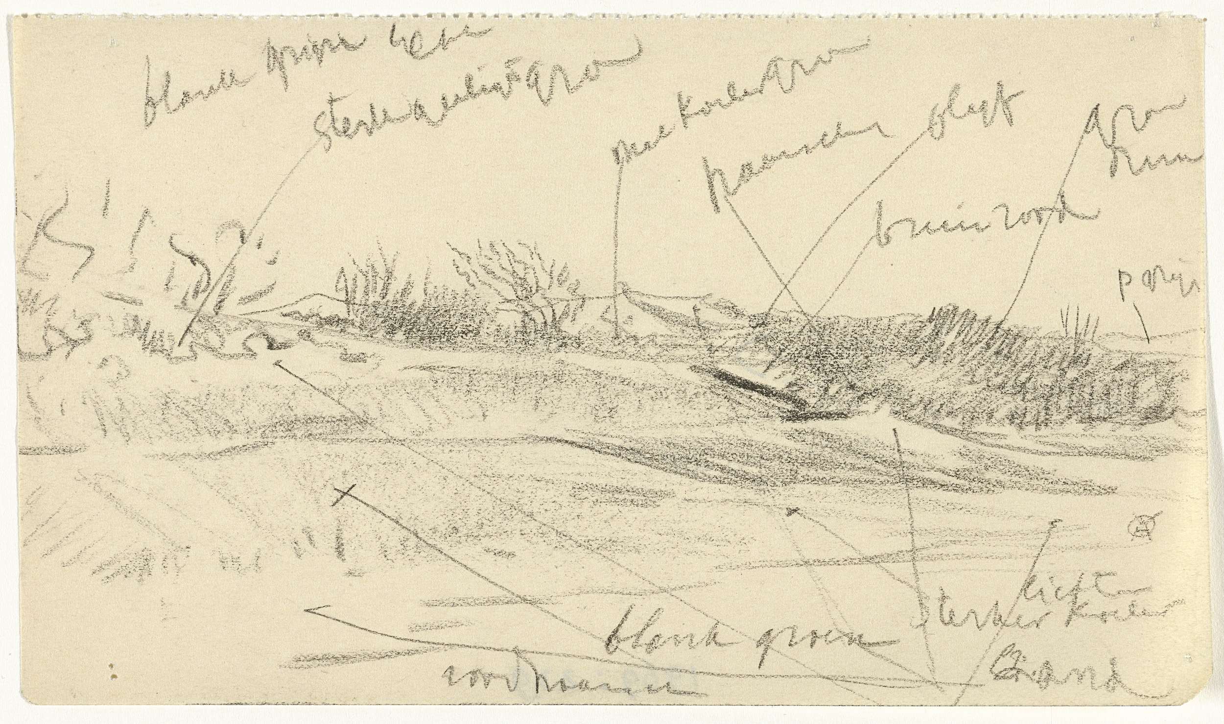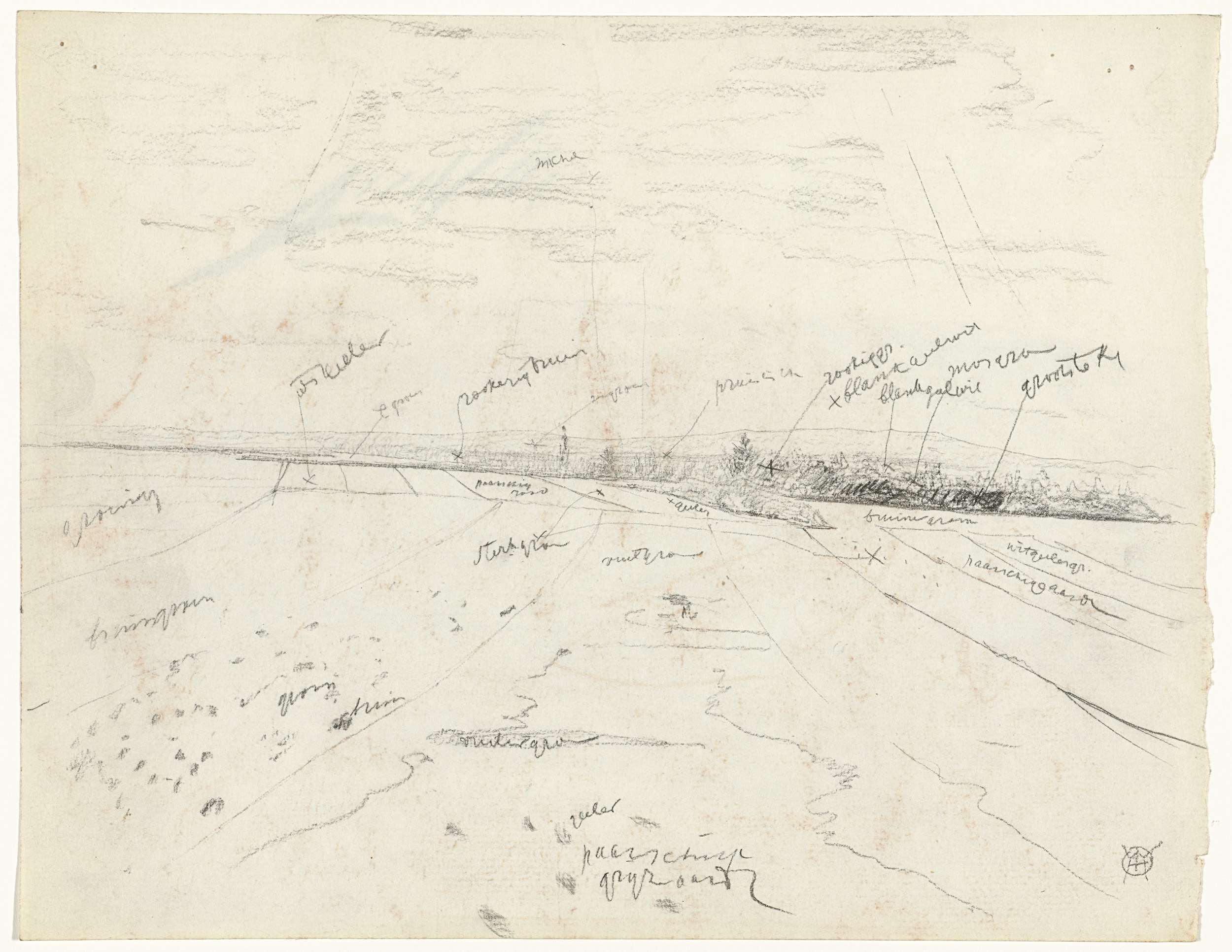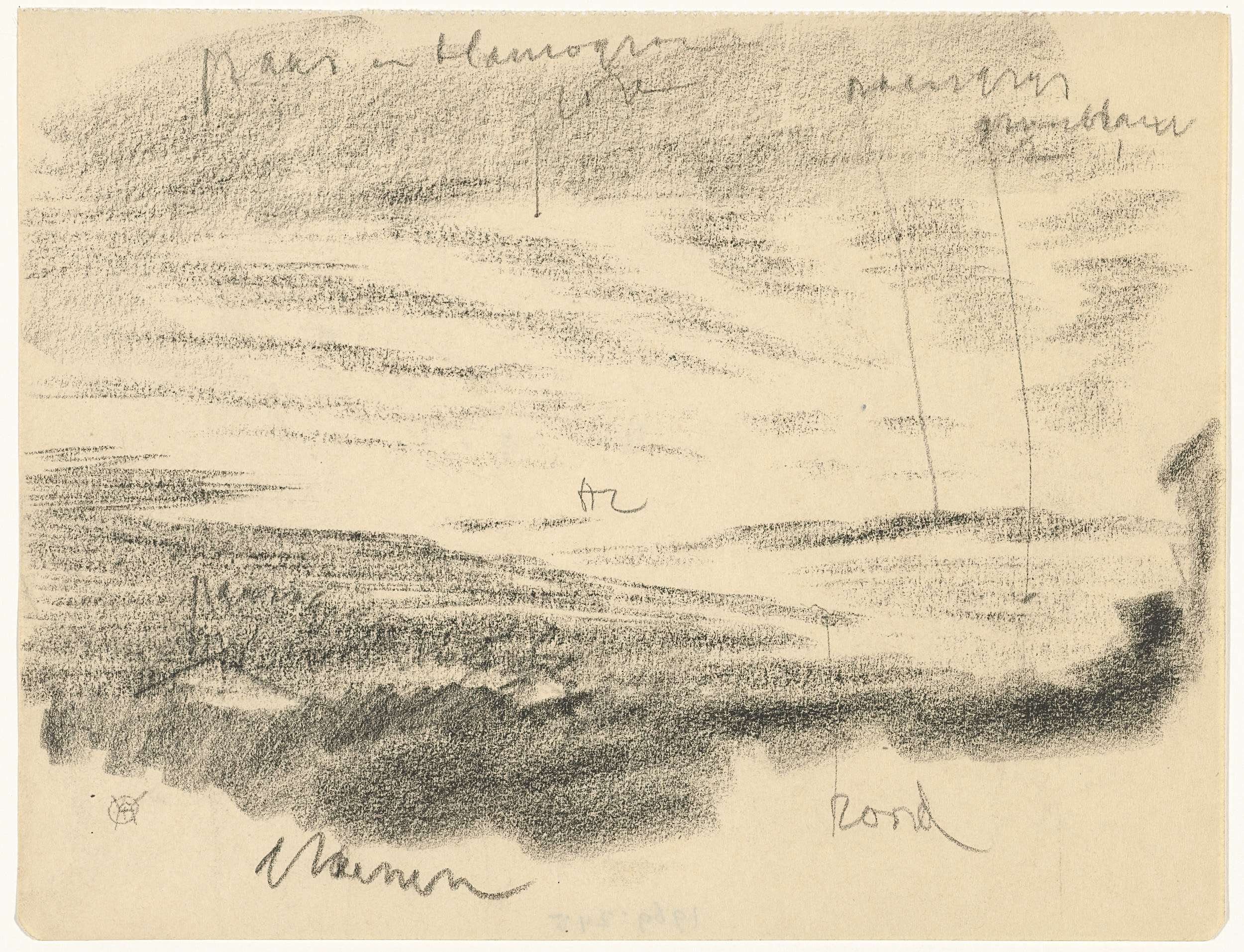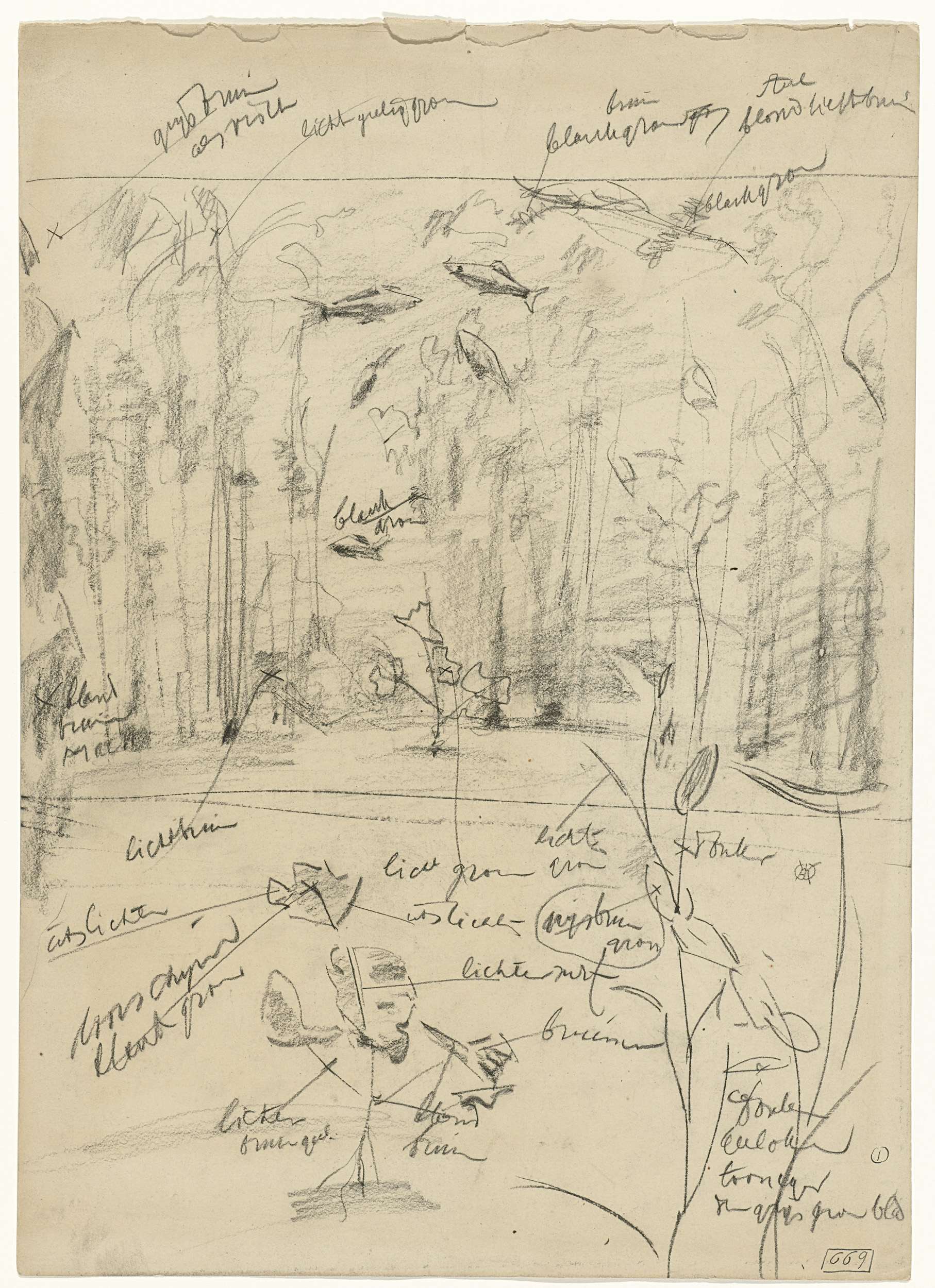 Landschap met werkers op 't land, met kleurnotities