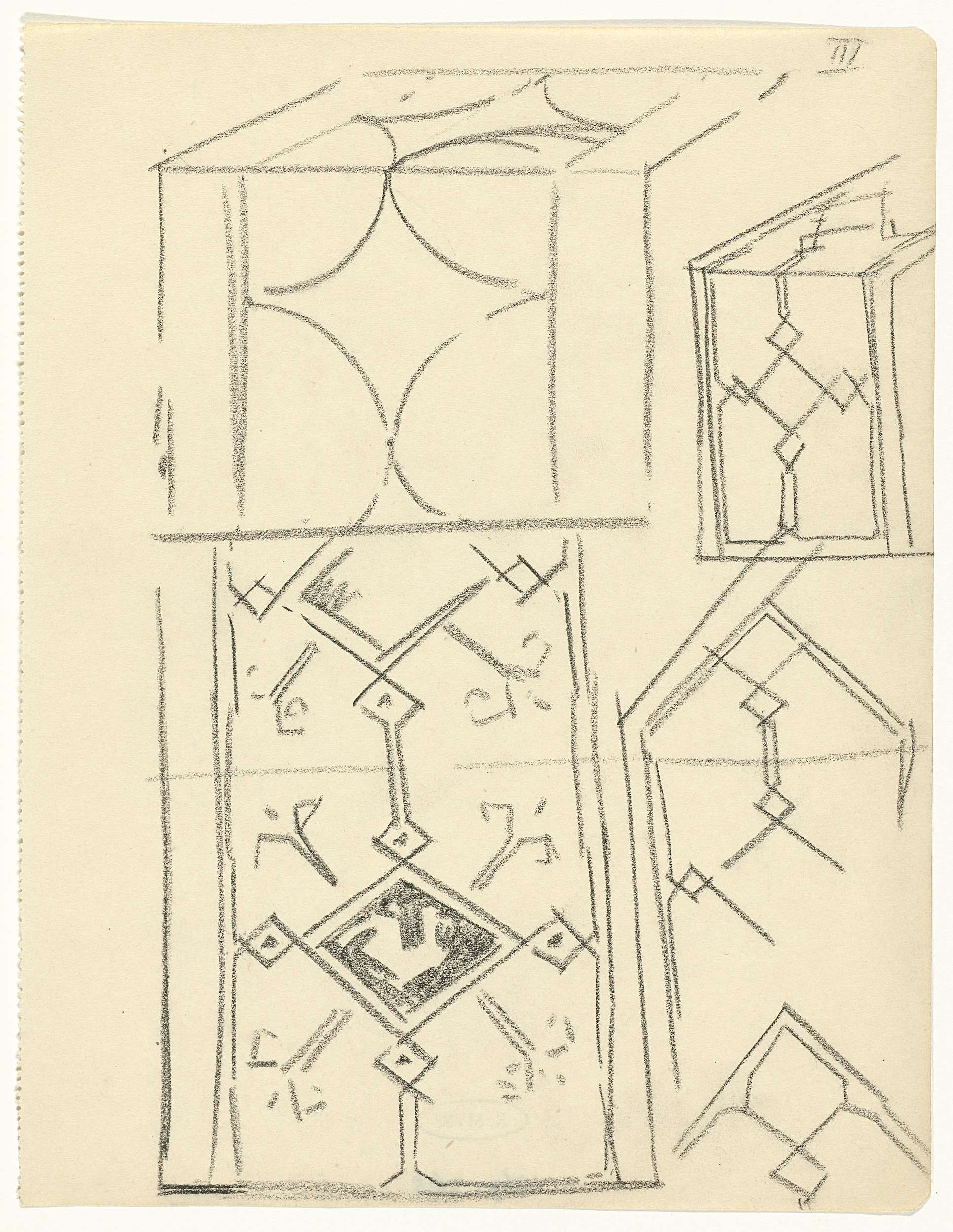 Fragment van een ornamentstudie van een fries