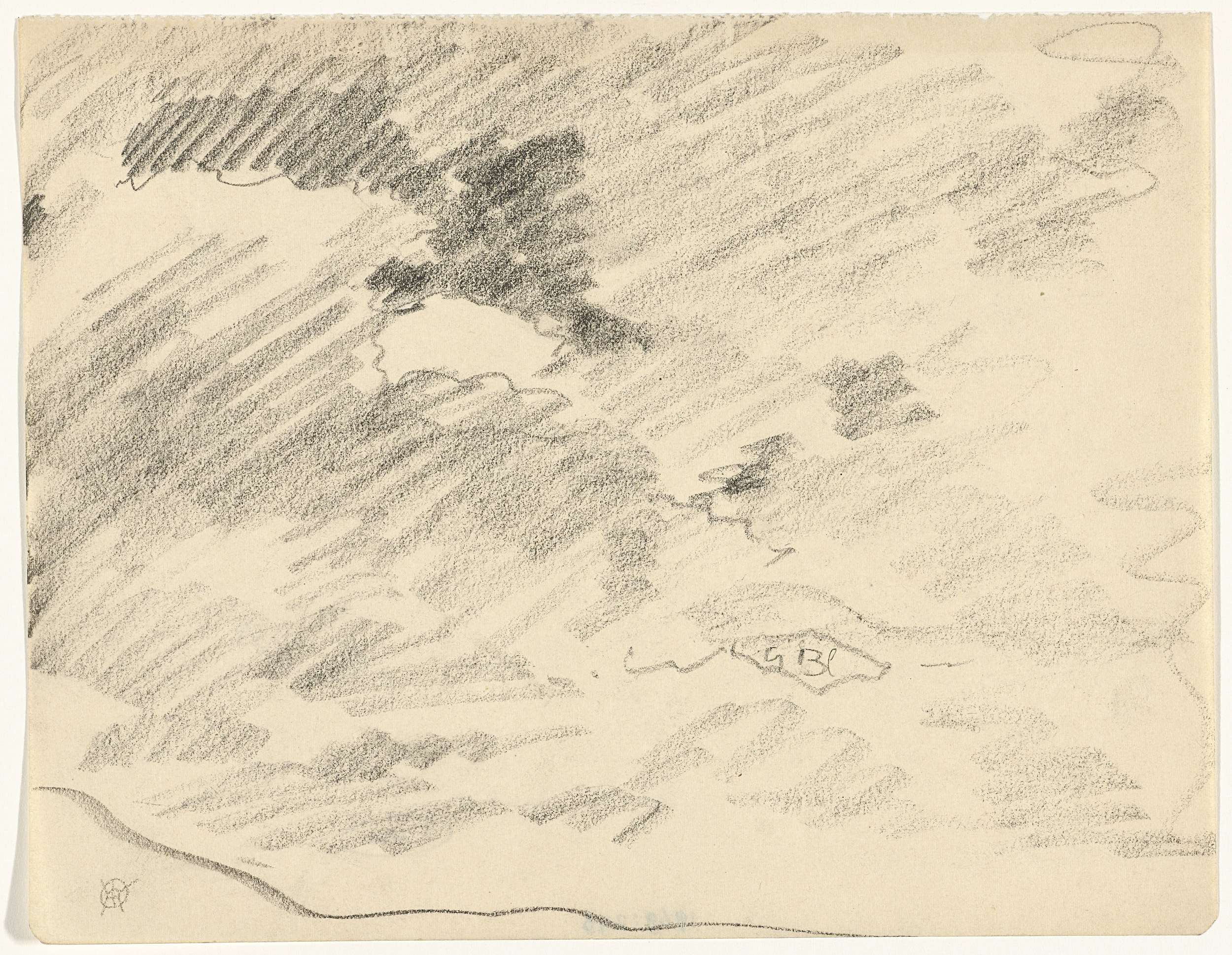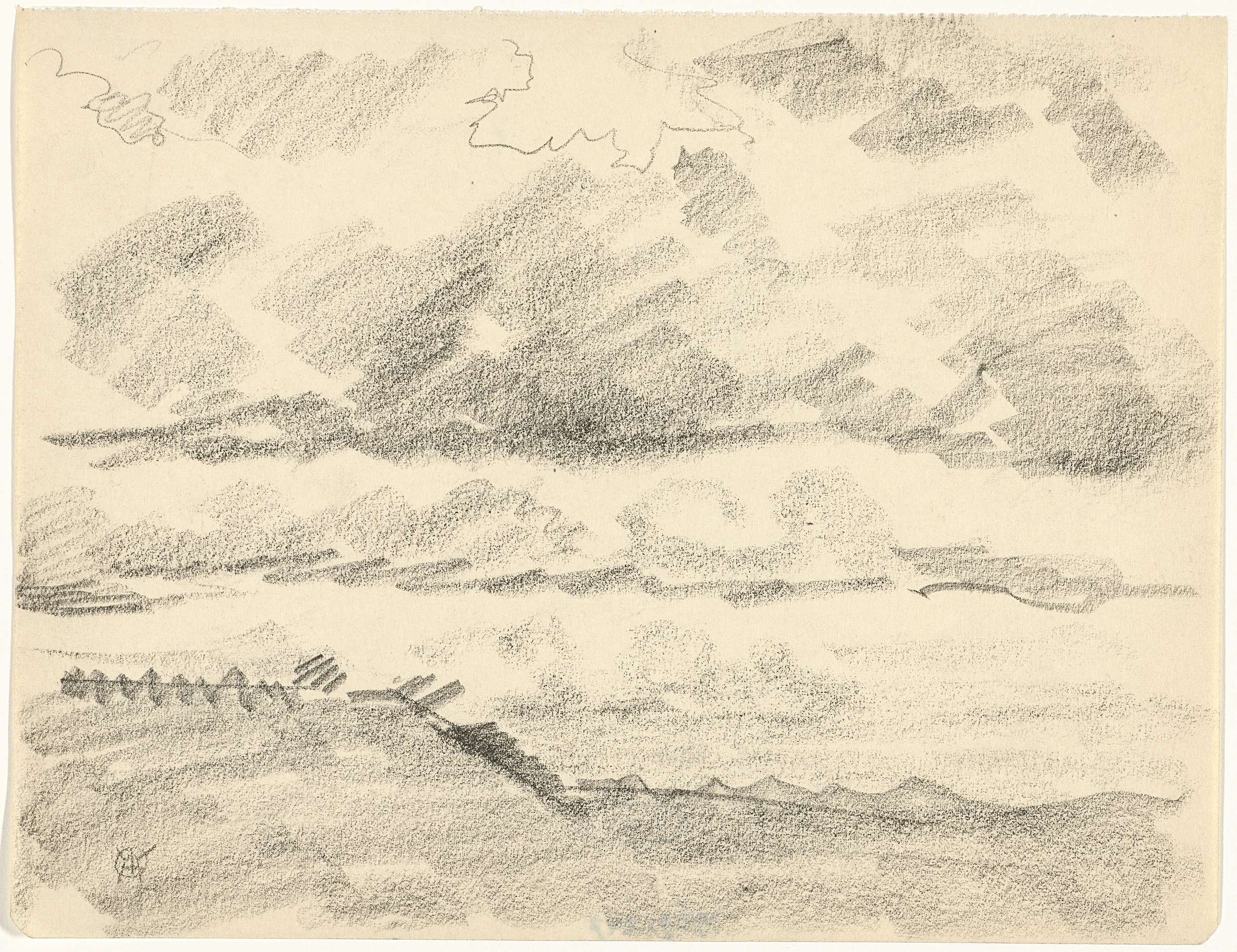 Wolkenlucht boven heuvels, met kleurnotities