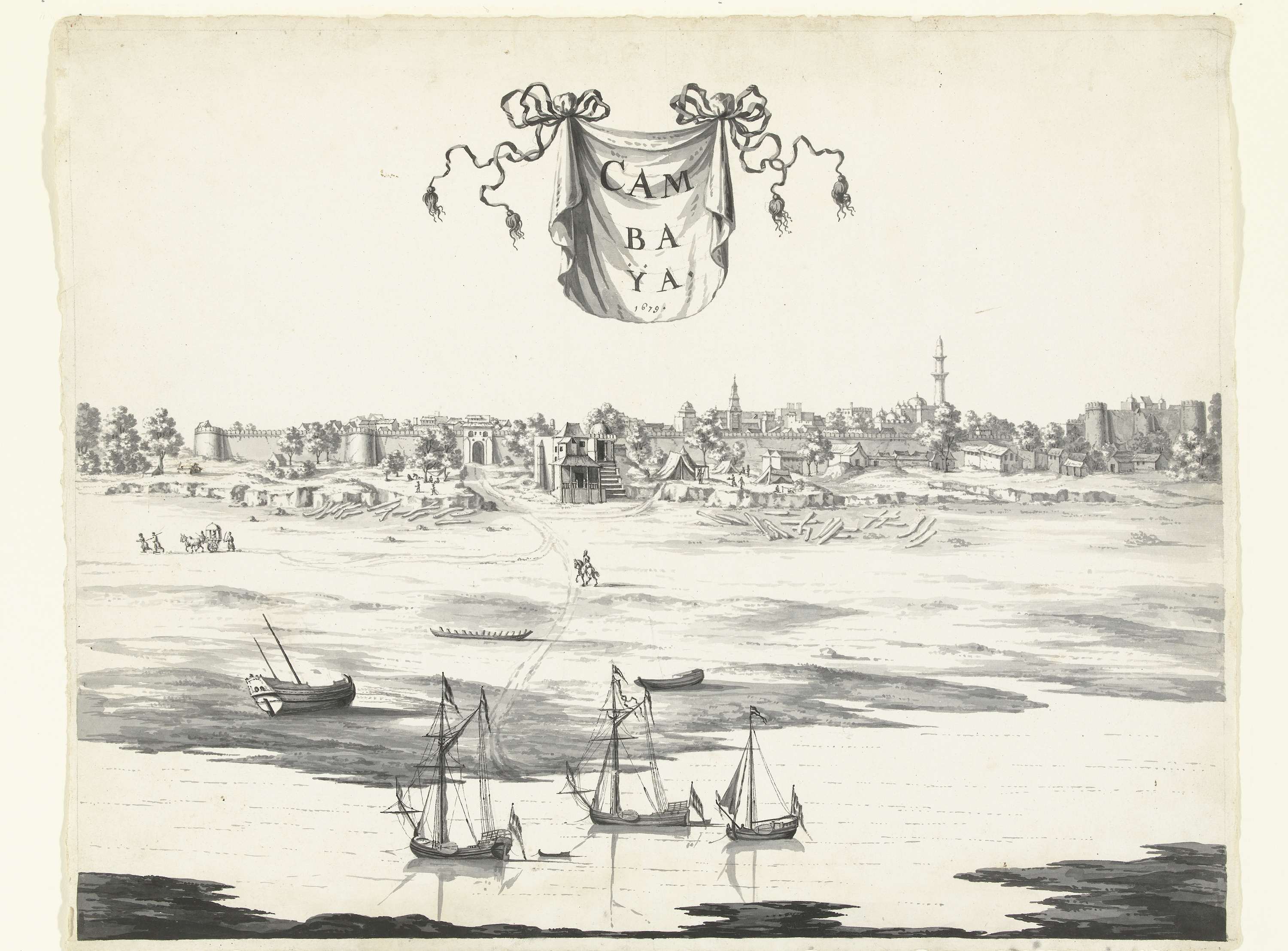 Gezicht op de stad Khambat (Cambay)