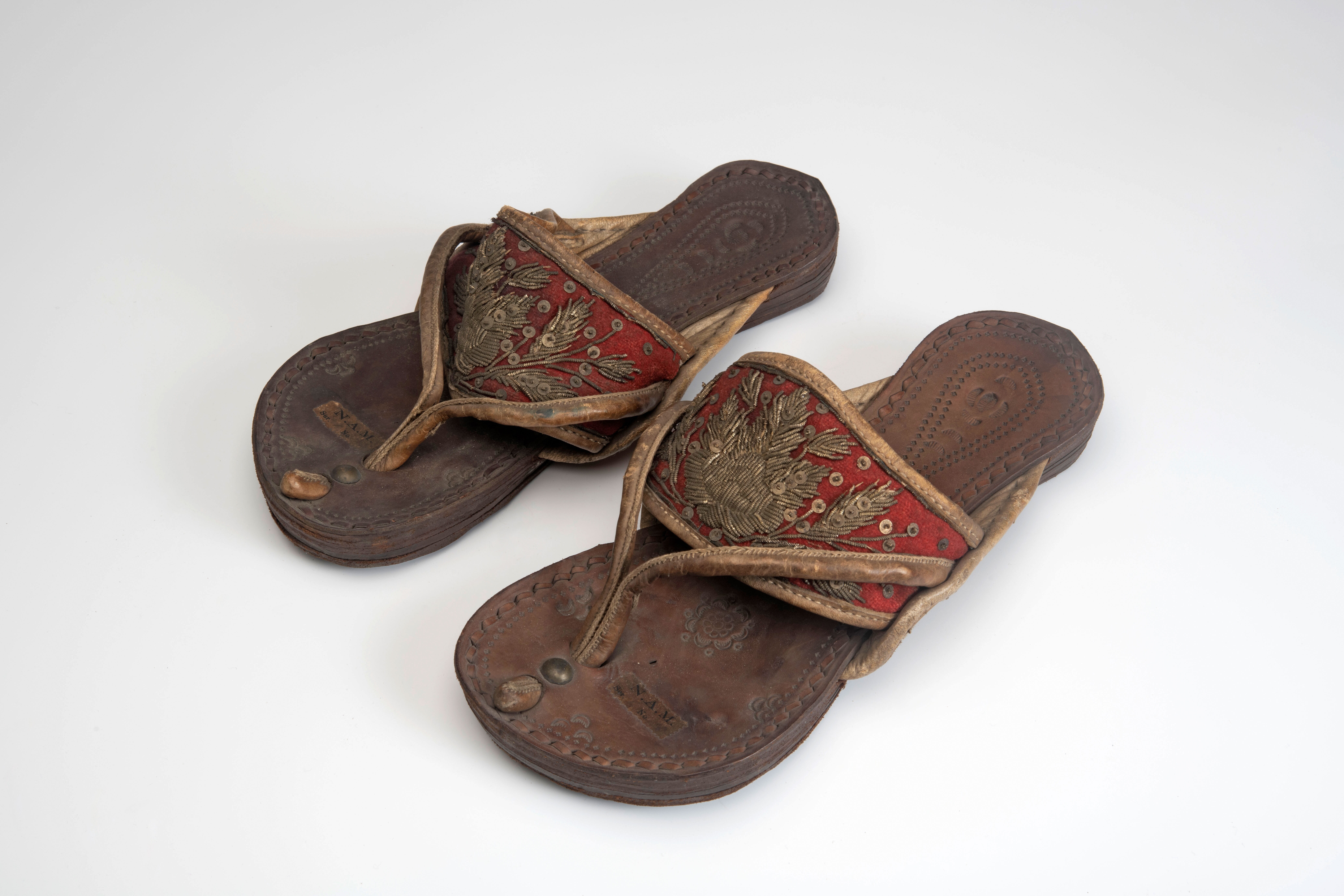 Een paar leren slippers