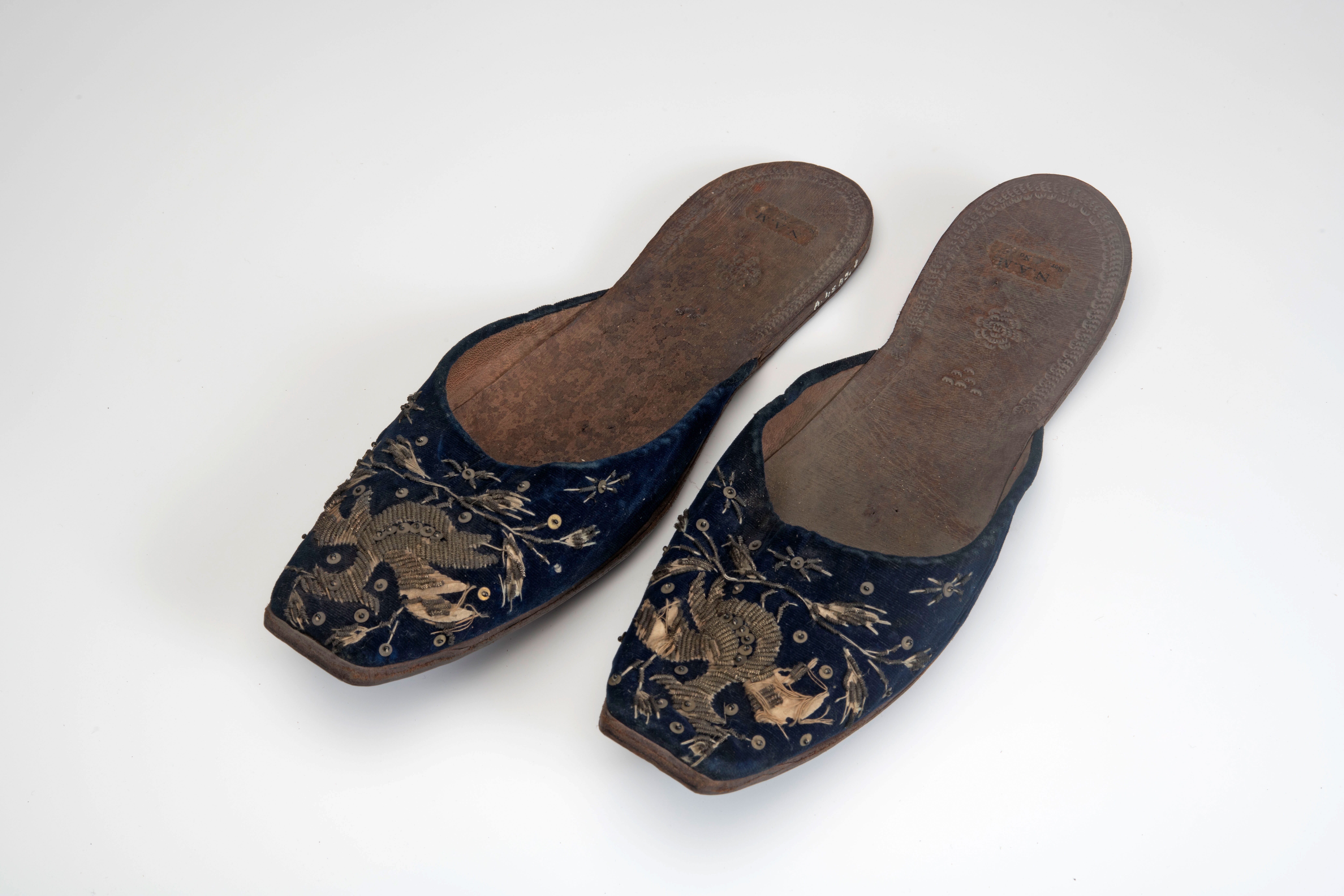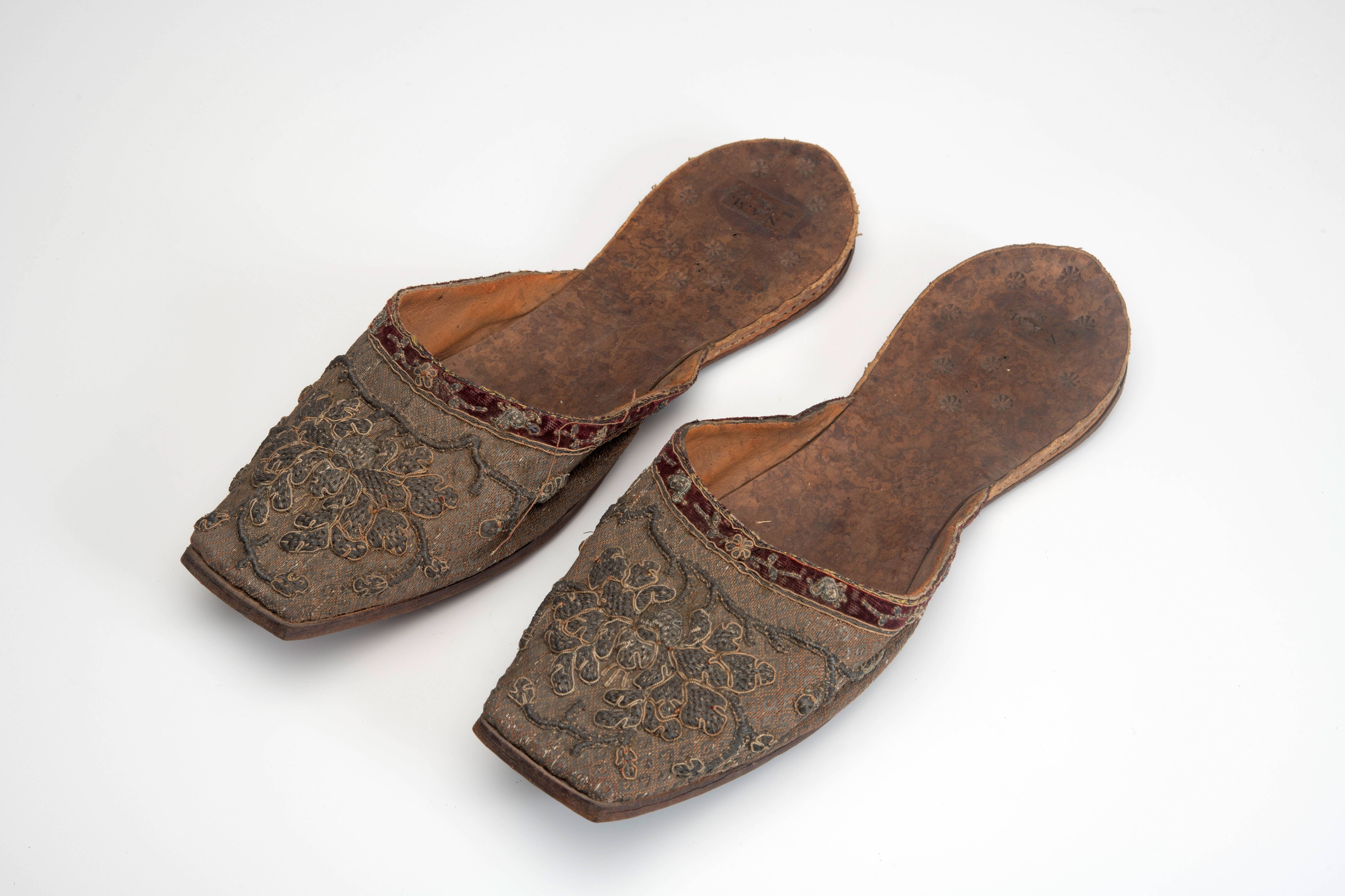 Een paar sloffen met borduurwerk