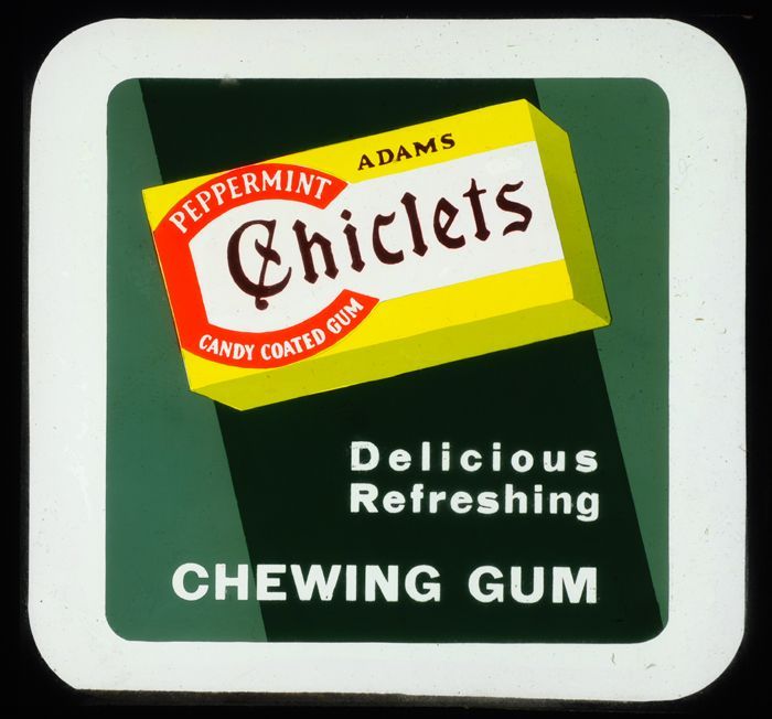Glasdia van Van Nelle met bioscoopreclame voor Chicl...
