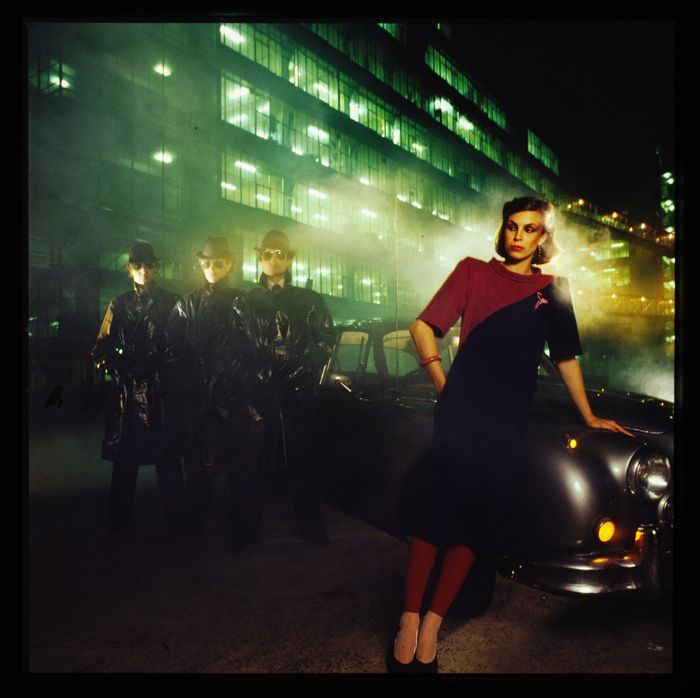 Glasdia van Van Nelle met mode foto in de fabriek, v...