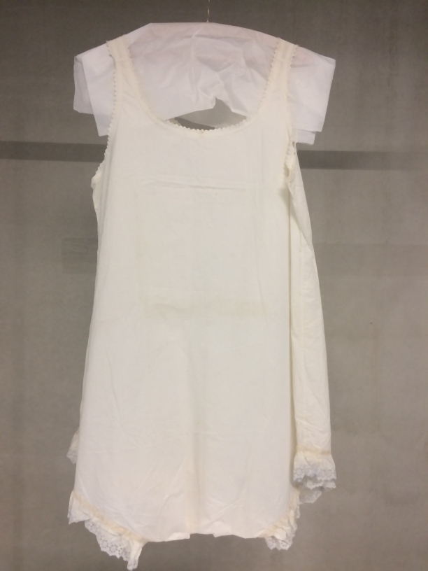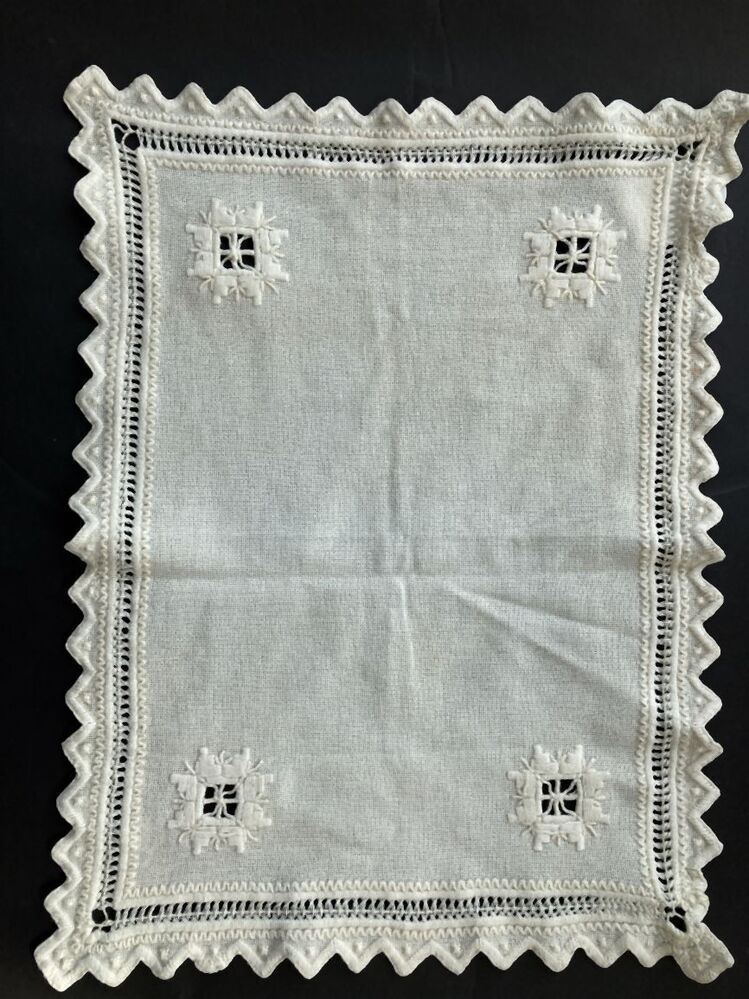 Kleedje van grofgeweven katoen met 'hardanger' bordu...