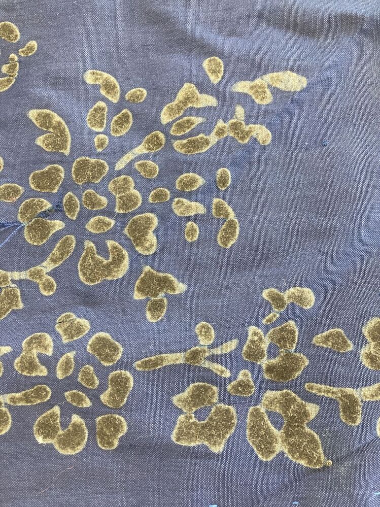 Blauwe tipdoek van luster met geplakte fluwelen rand...