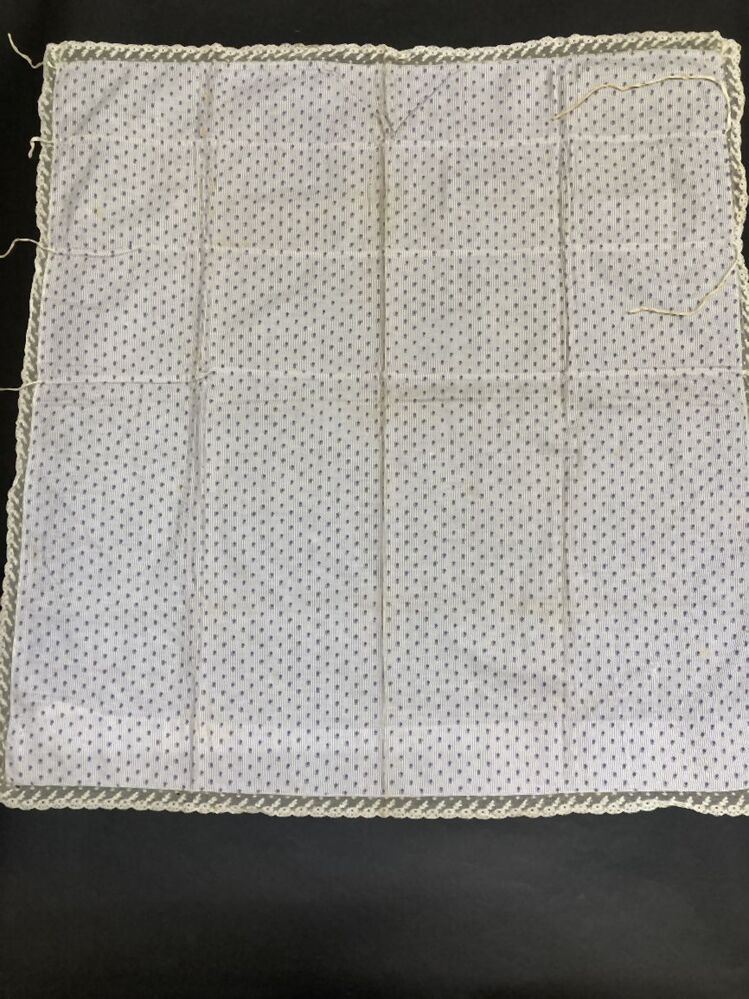 Lettermerklap met sterk verkleurd linnen, gemerkt D....