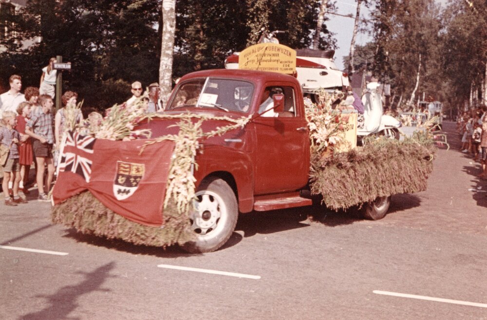 Een versierde vrachtwagen van rijschool Joop Haverkamp