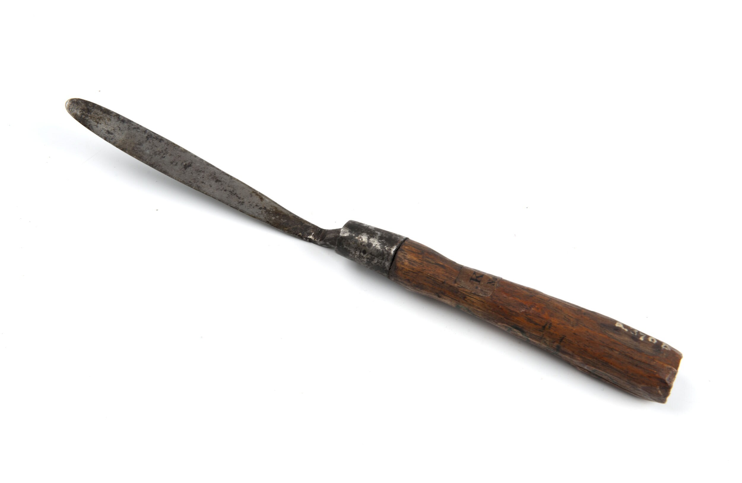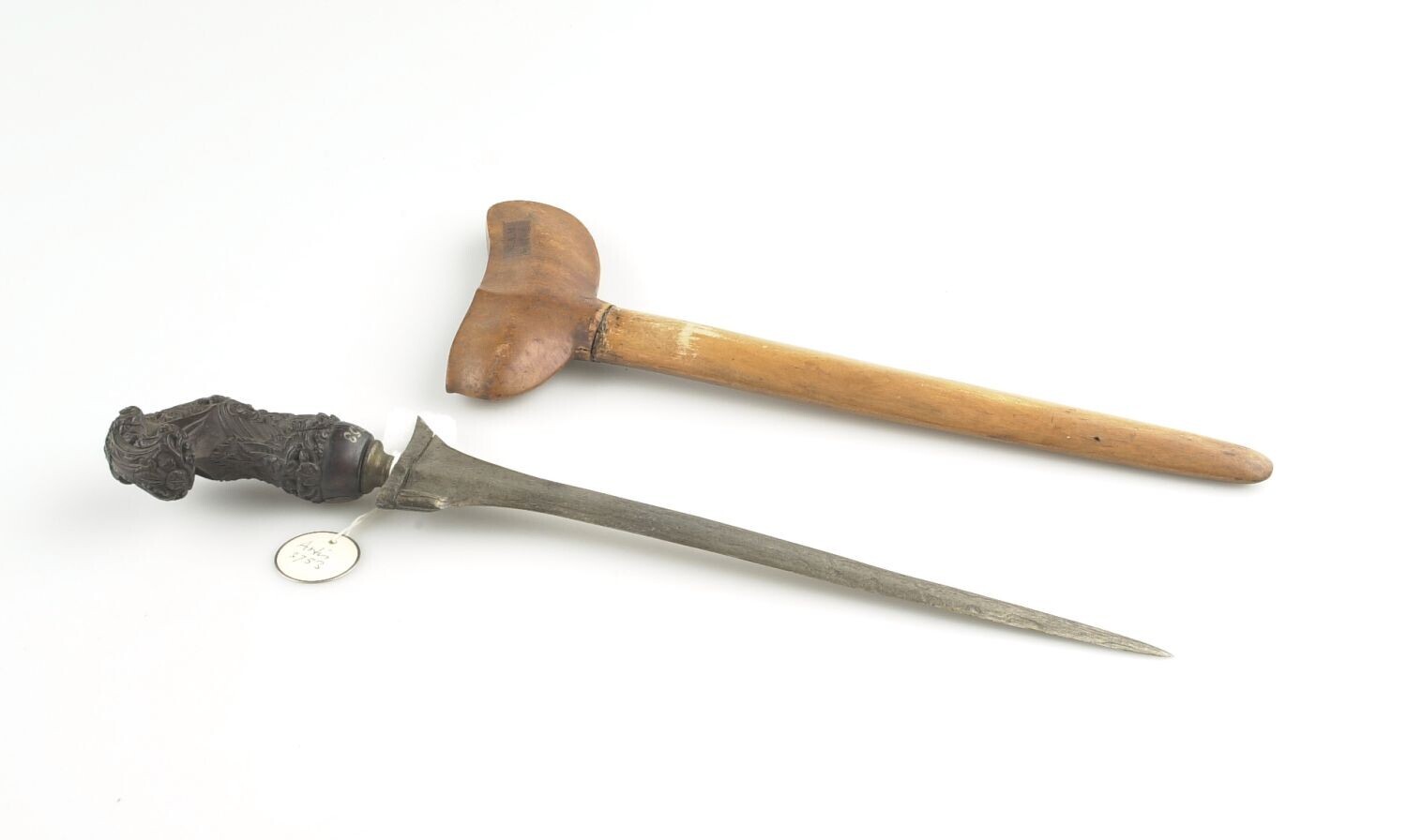 Dissel voorzien van ijzeren kling, versierd met smee...