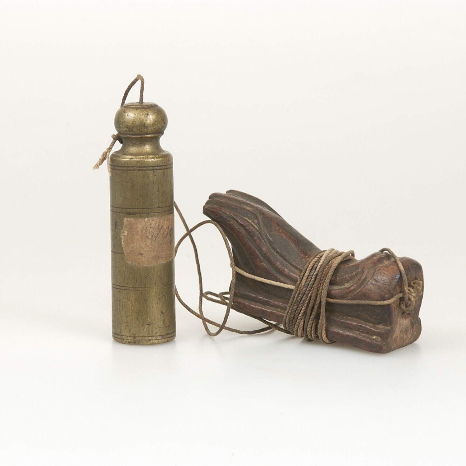 Dissel van ijzer en hout, met een beschermhoes van b...