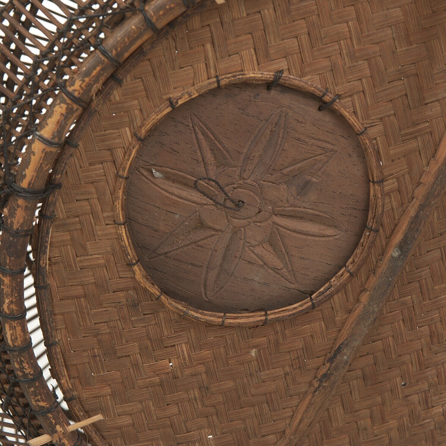 Schepmand van gevlochten bamboe, om vis mee te vangen