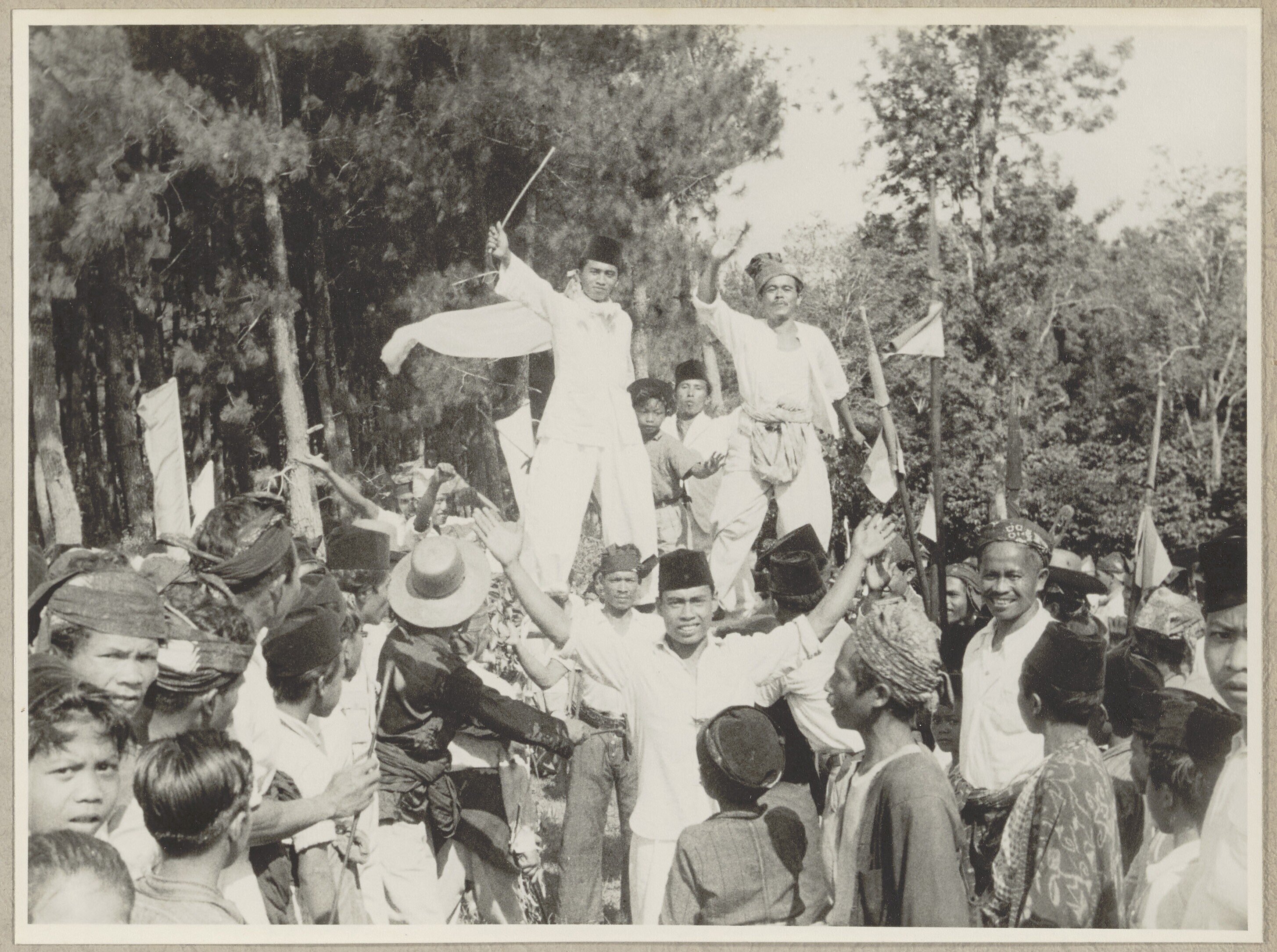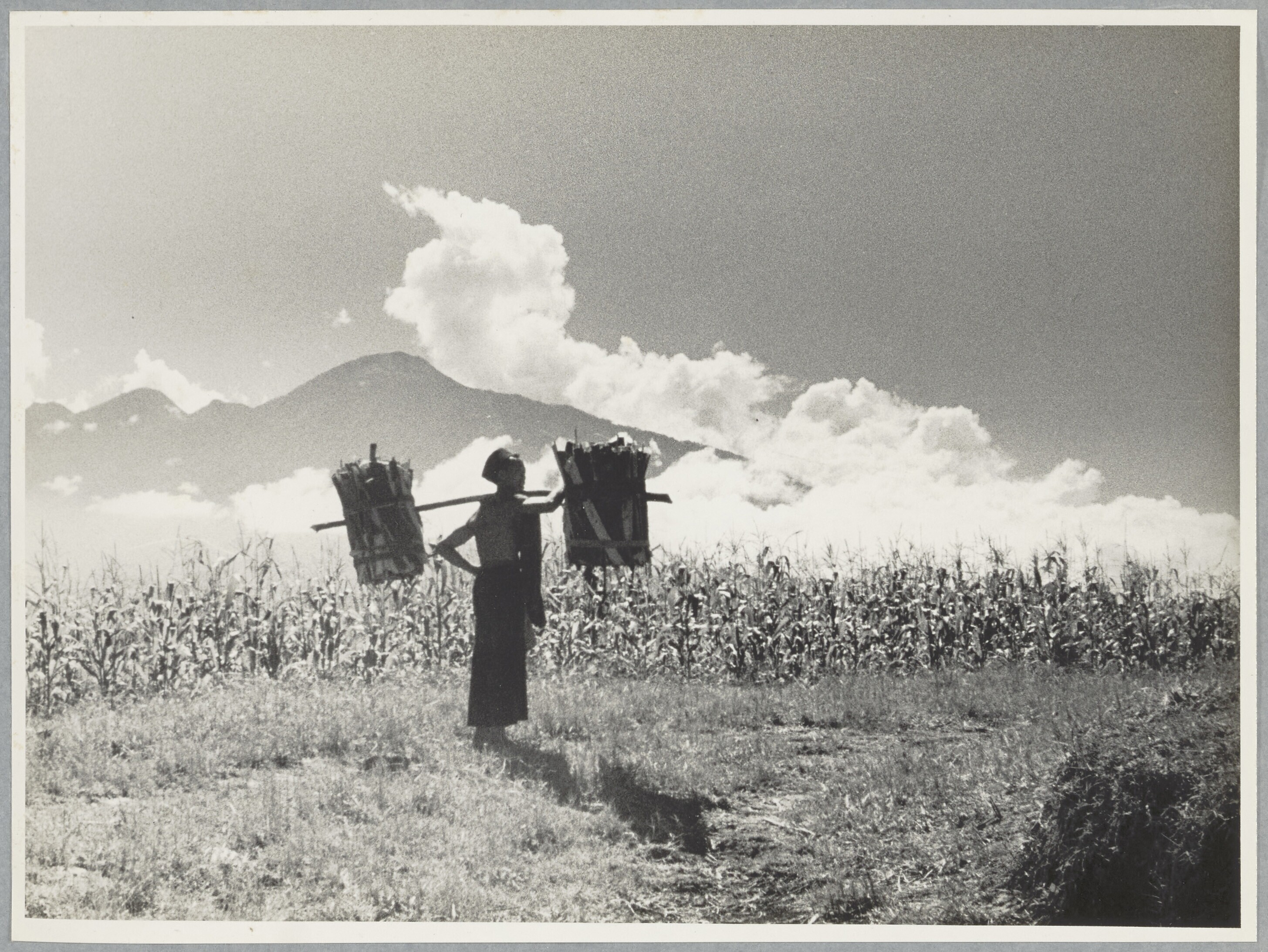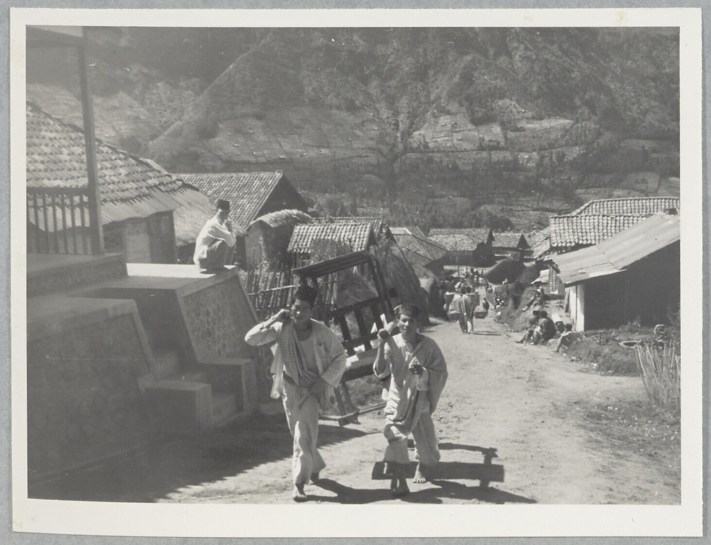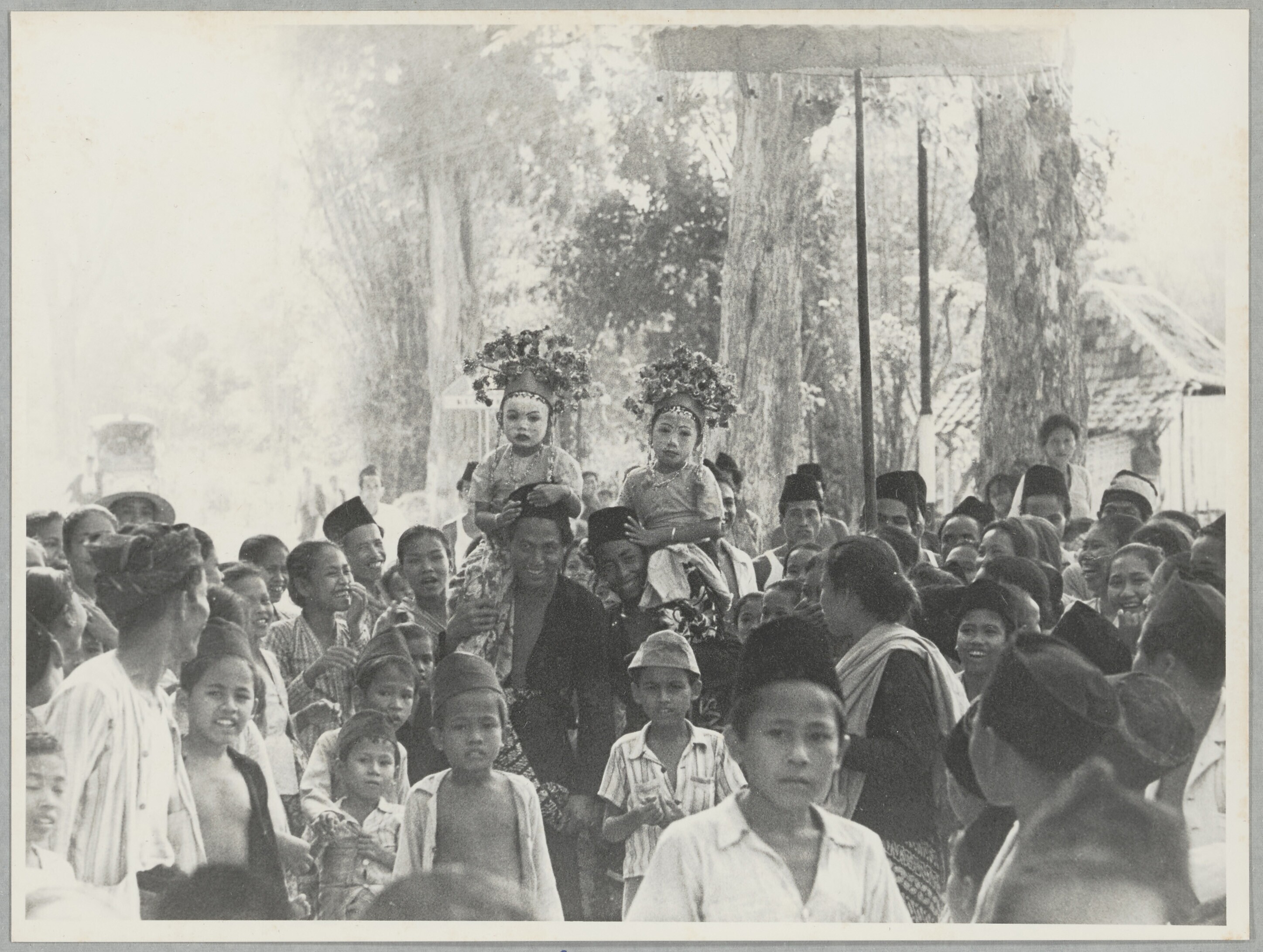 Javaanse vrouw met een kind aan haar hand en een wat...