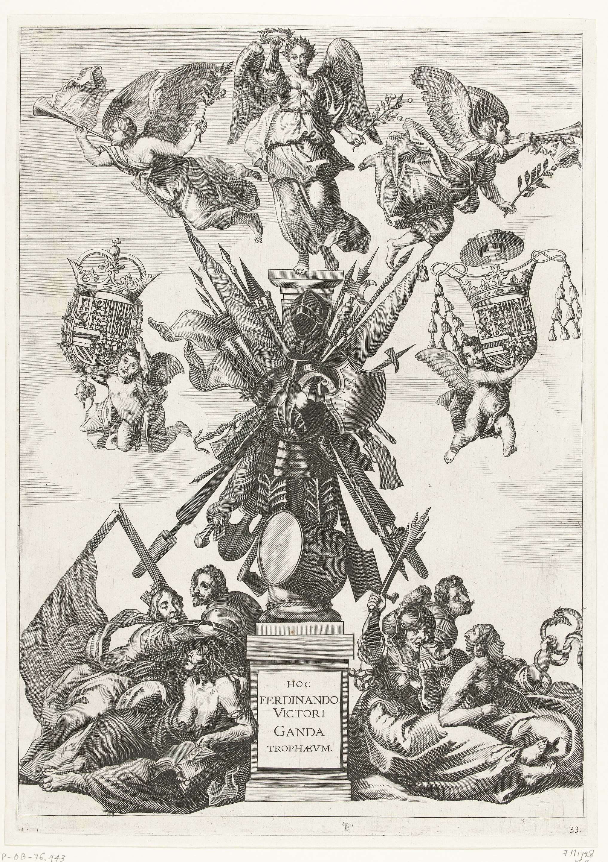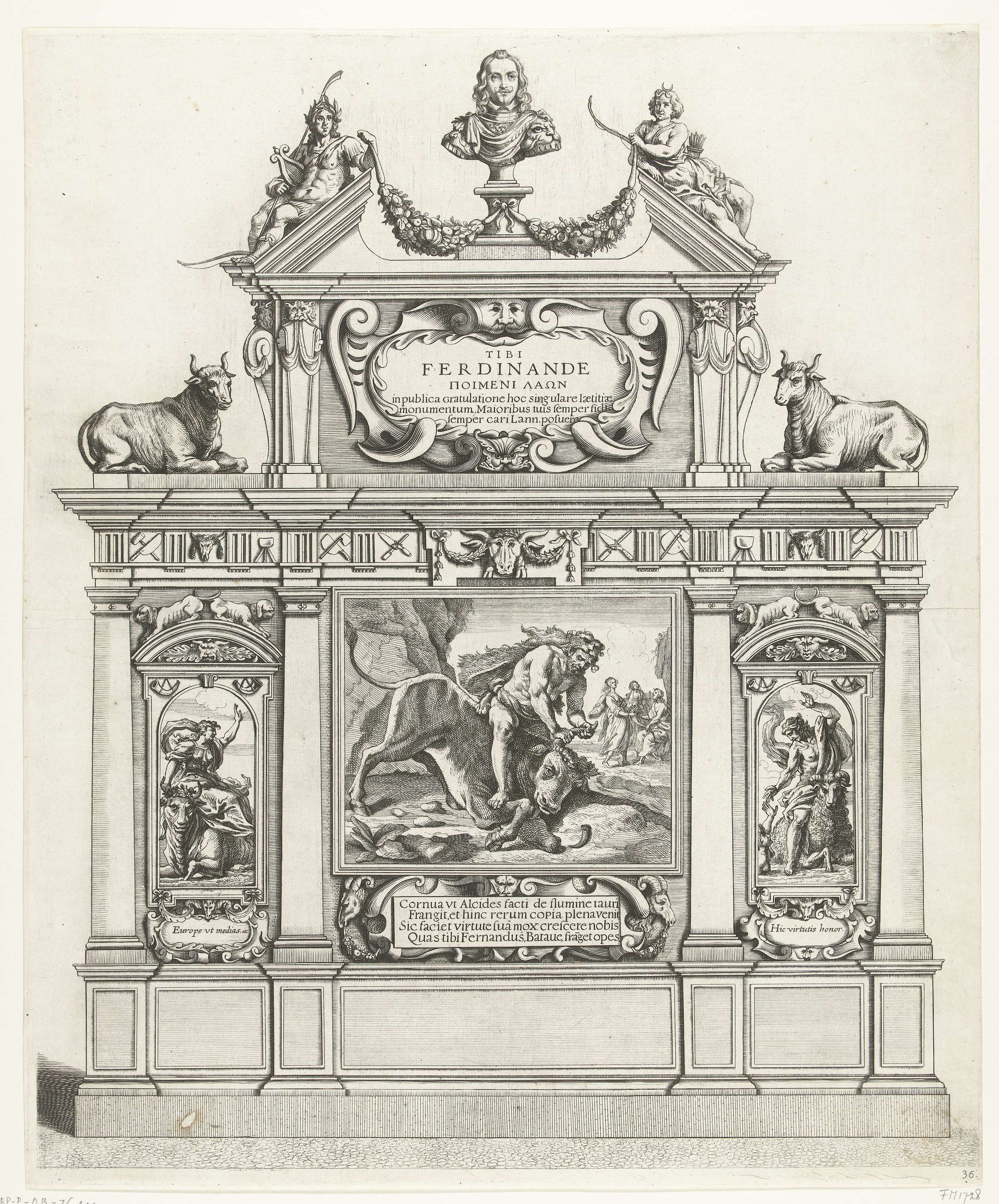Triomfboog met Hercules die een stier verslaat; into...