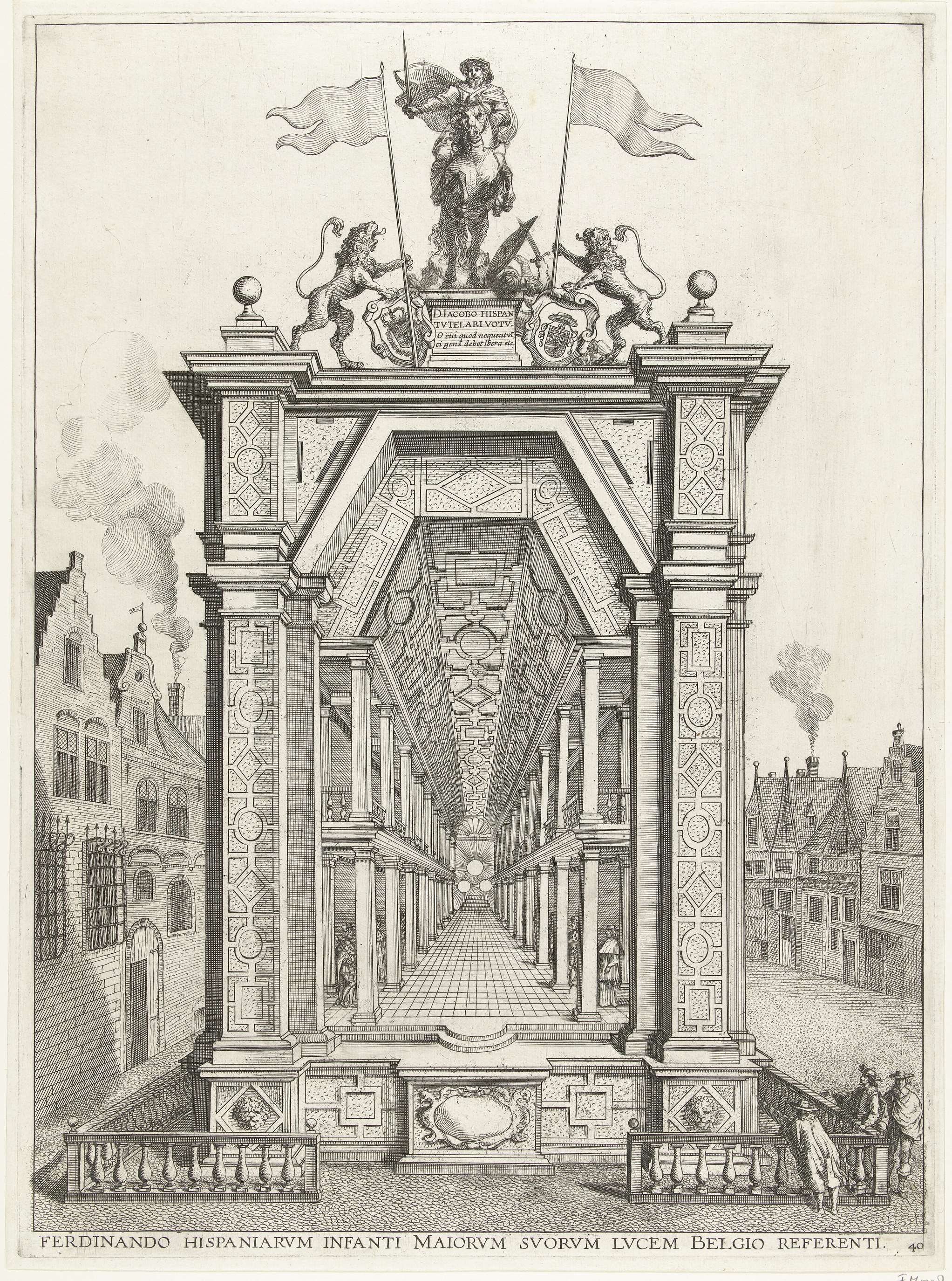Triomfboog met voorstellingen van het oude kasteel; ...