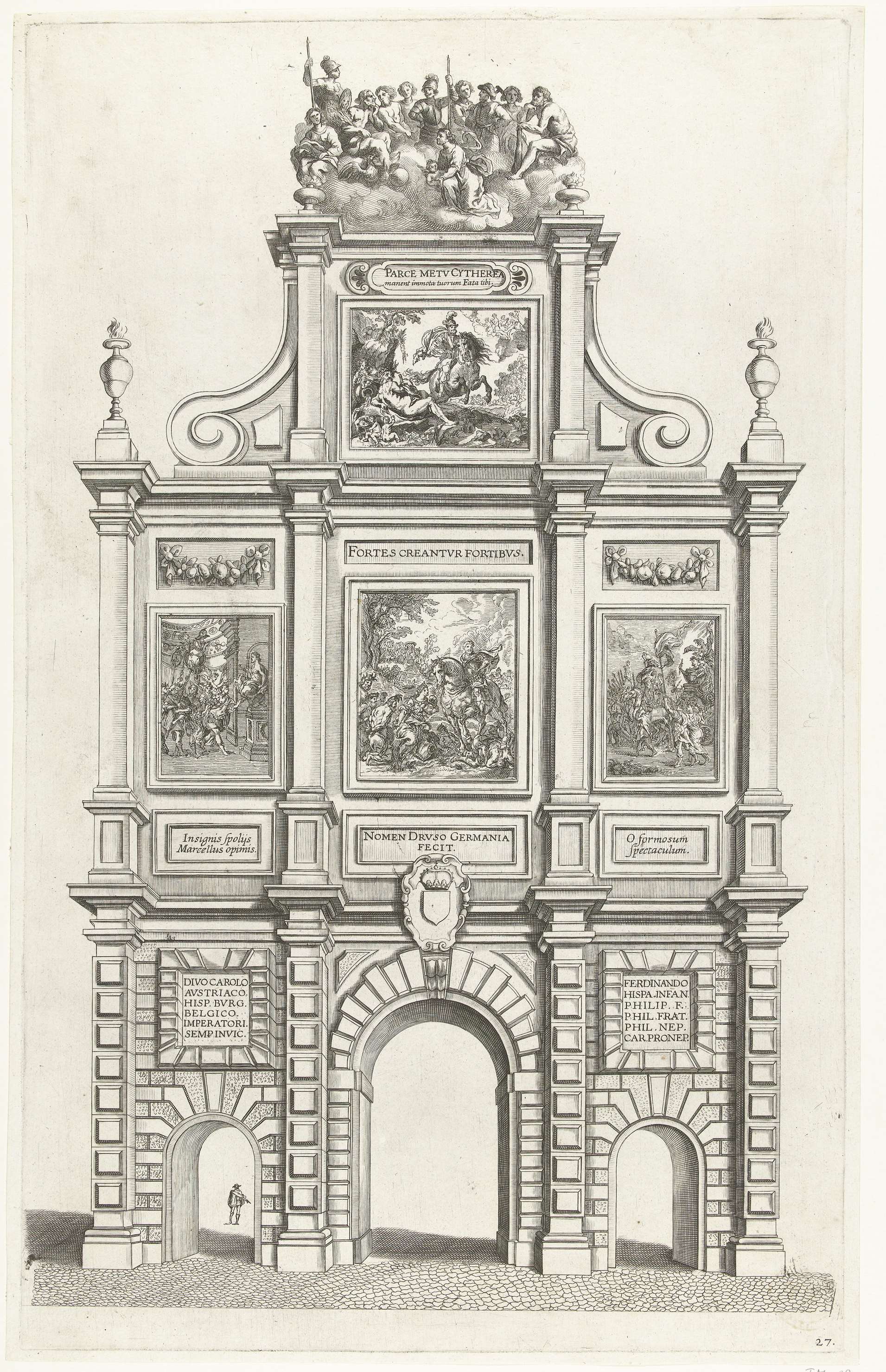 Voorzijde van de triomfpoort Arcus Caroli op de Vrij...