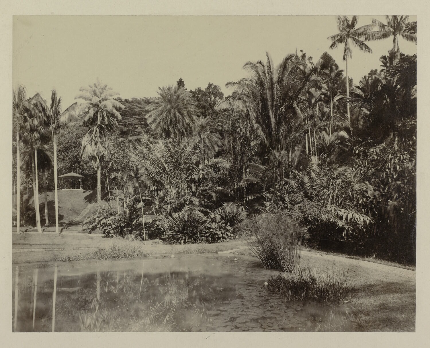 De vijver bij de Tjiliwong in 's Lands Plantentuin t...