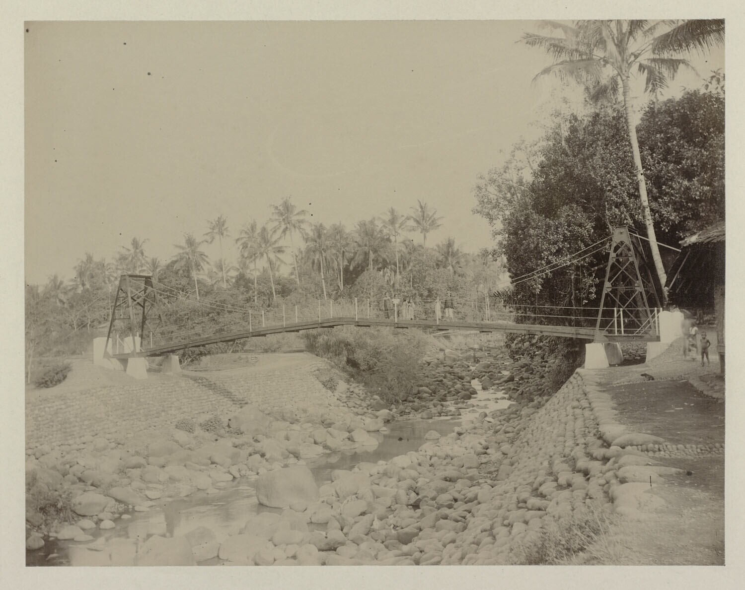 De nieuwe hangbrug over de rivier de Tjiliwong bij '...