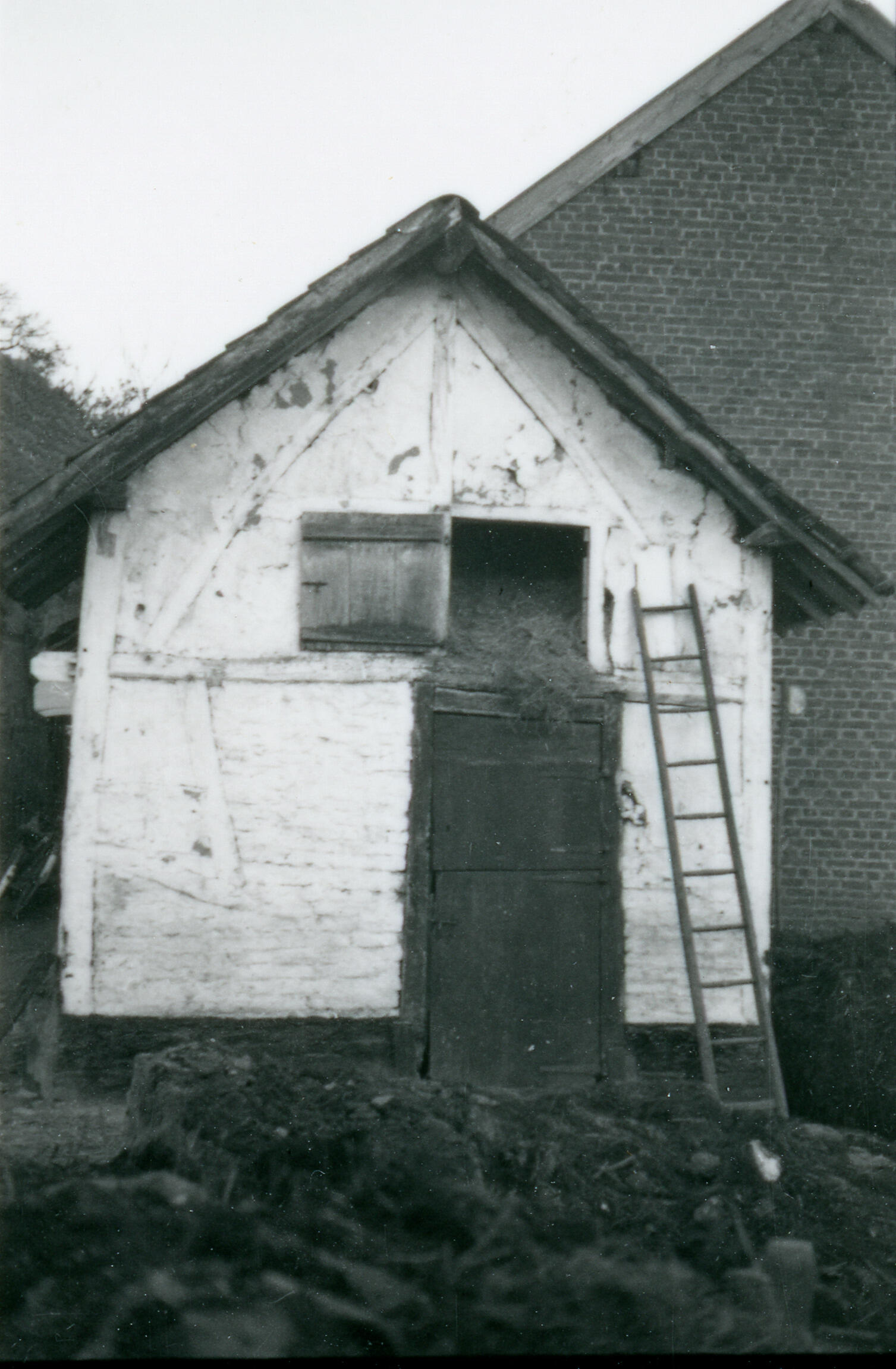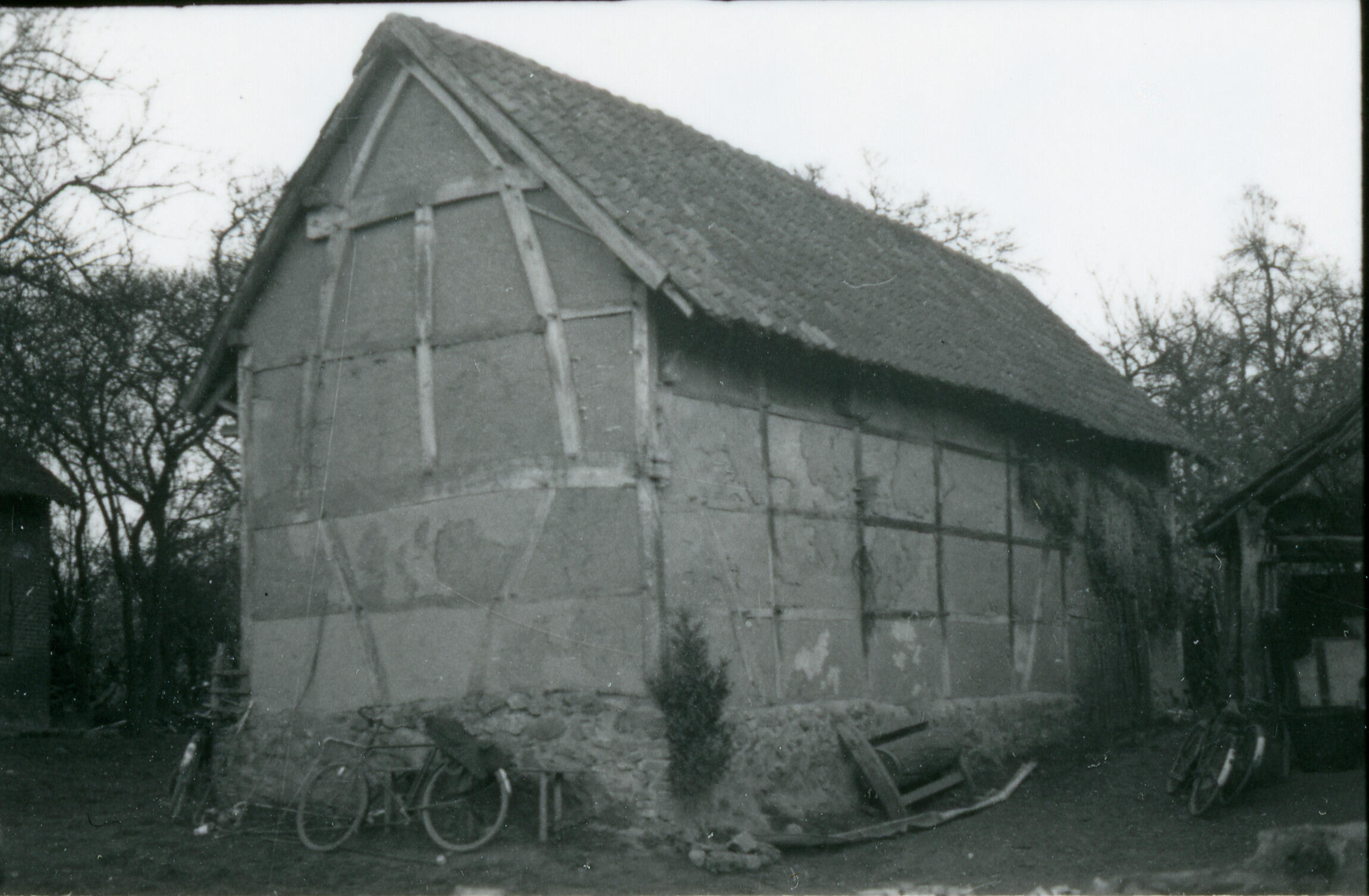 Schuur met vakwerkbouw, Bruisterbosch, 1937 (zwart-w...