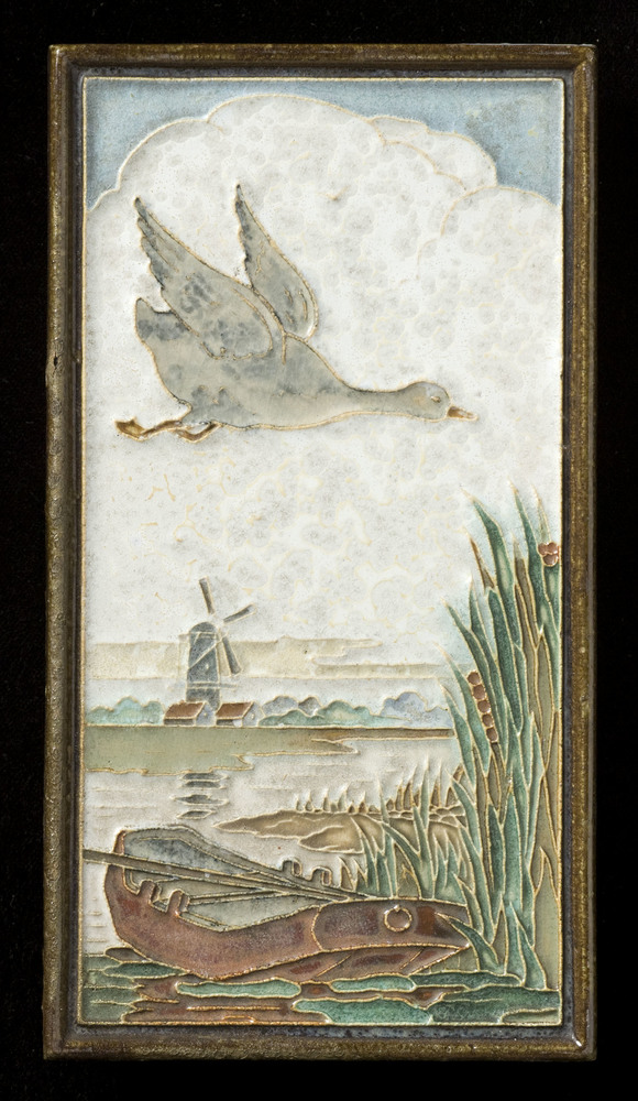 Tegel in cloisonné-techniek, met voorstelling: water...