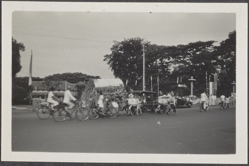 De feestelijk versierde Bragaweg in Bandoeng, ter ge...