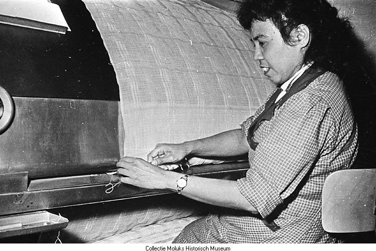 Vrouw aan weefmachine