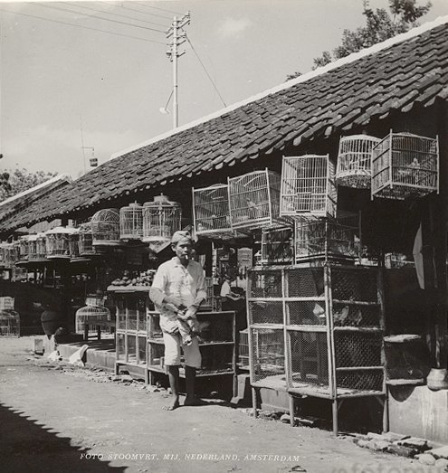 Verkoper van zangvogels, Garut, Java. Indonesië (193...