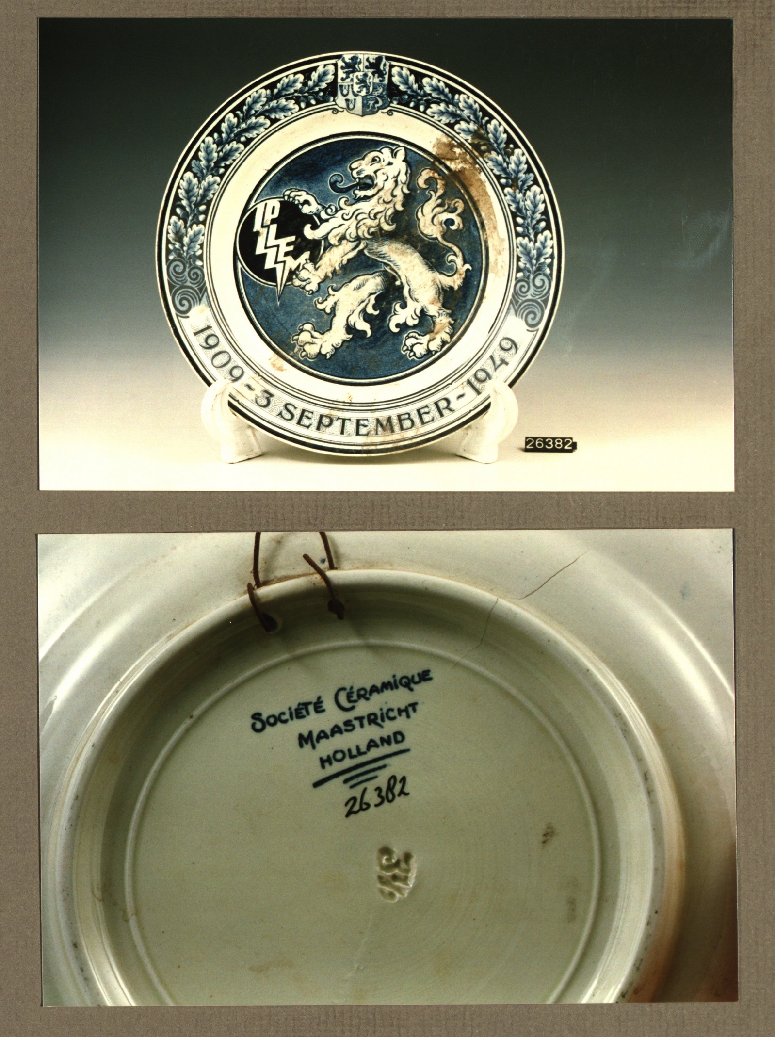 Plat bord, model H met decor Vimpoltu 40 jarig besta...