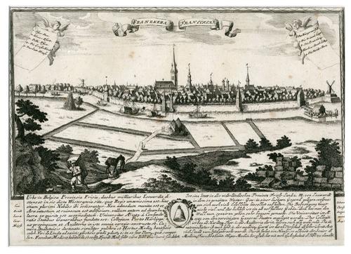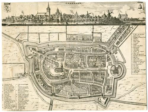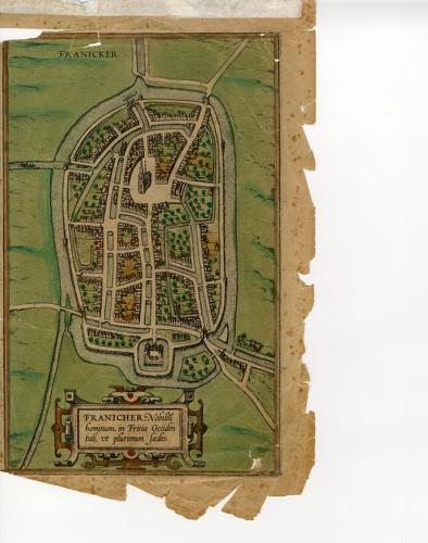 Gravure van een plattegrond van Franeker door Braun ...