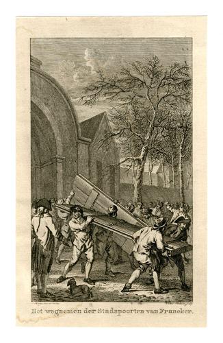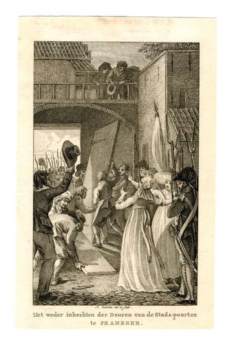 Gravure van de Noorderpoort in Franeker door J. Bult...