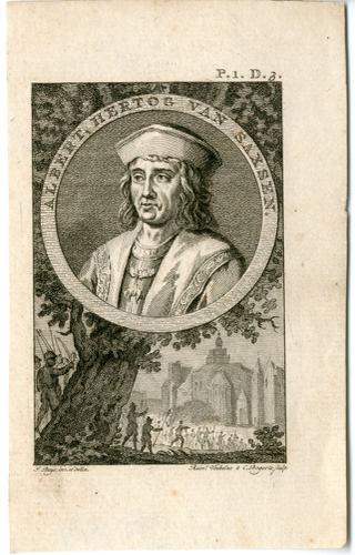 Gravure met een portret van Albert, hertog van Saxen...