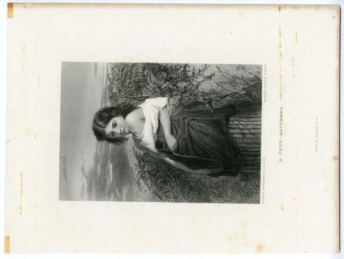 Staalgravure van een meisje dat varens verzamelt.