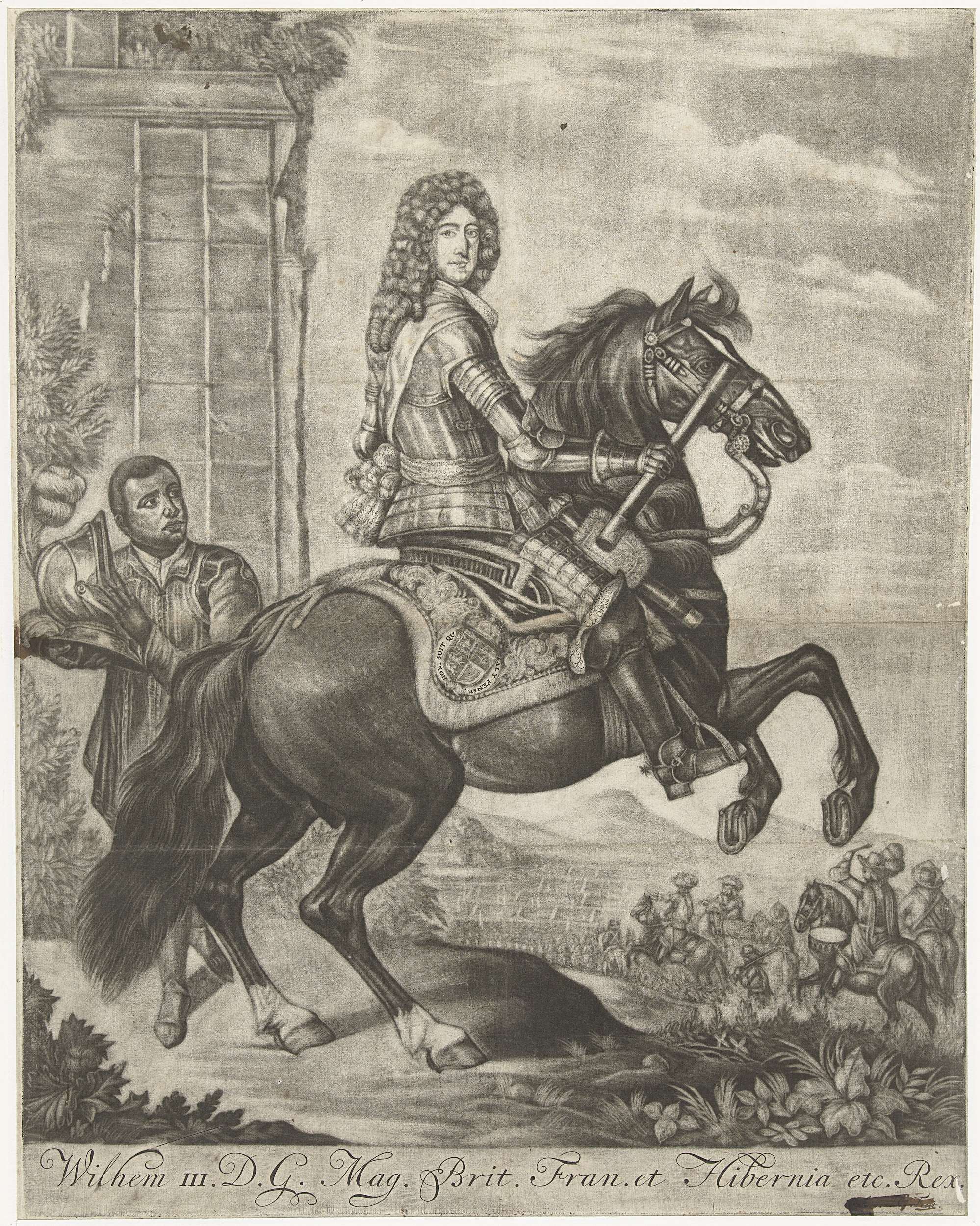 Willem III te paard en een tot slaaf gemaakte bediende