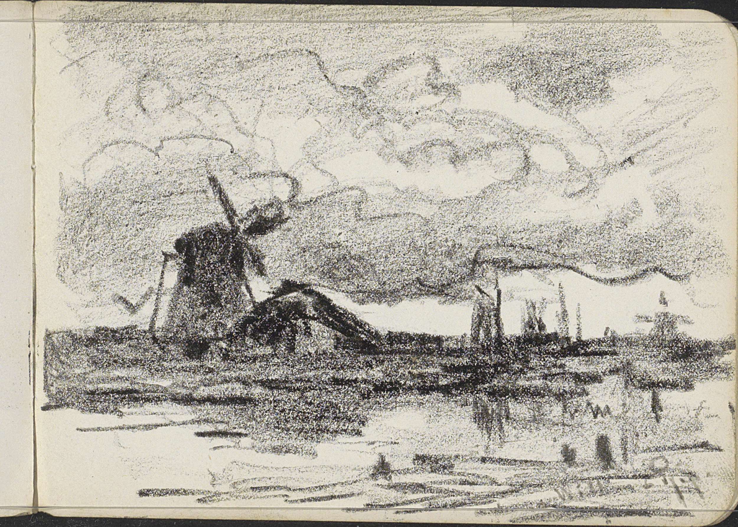 Landschap met een molen aan het water