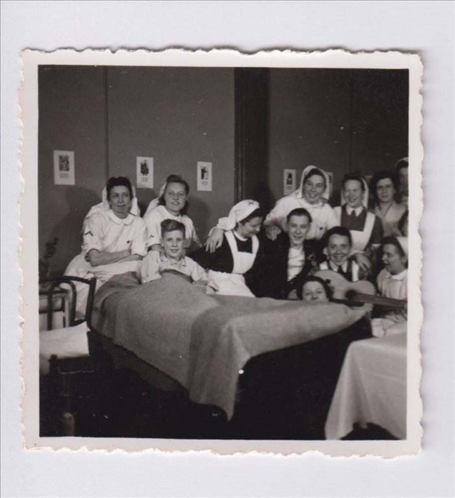 Foto van verpleegsters rondom het bed van een jonge ...