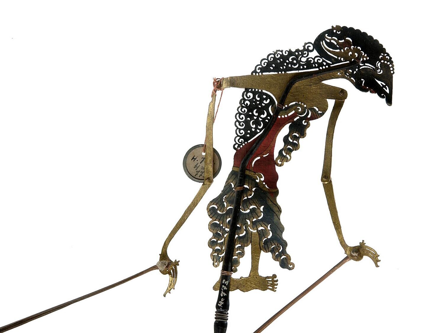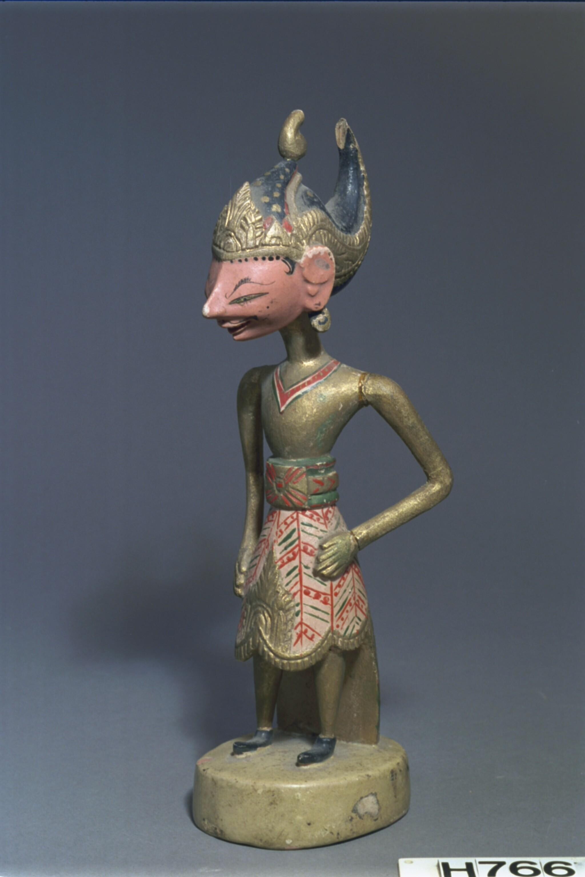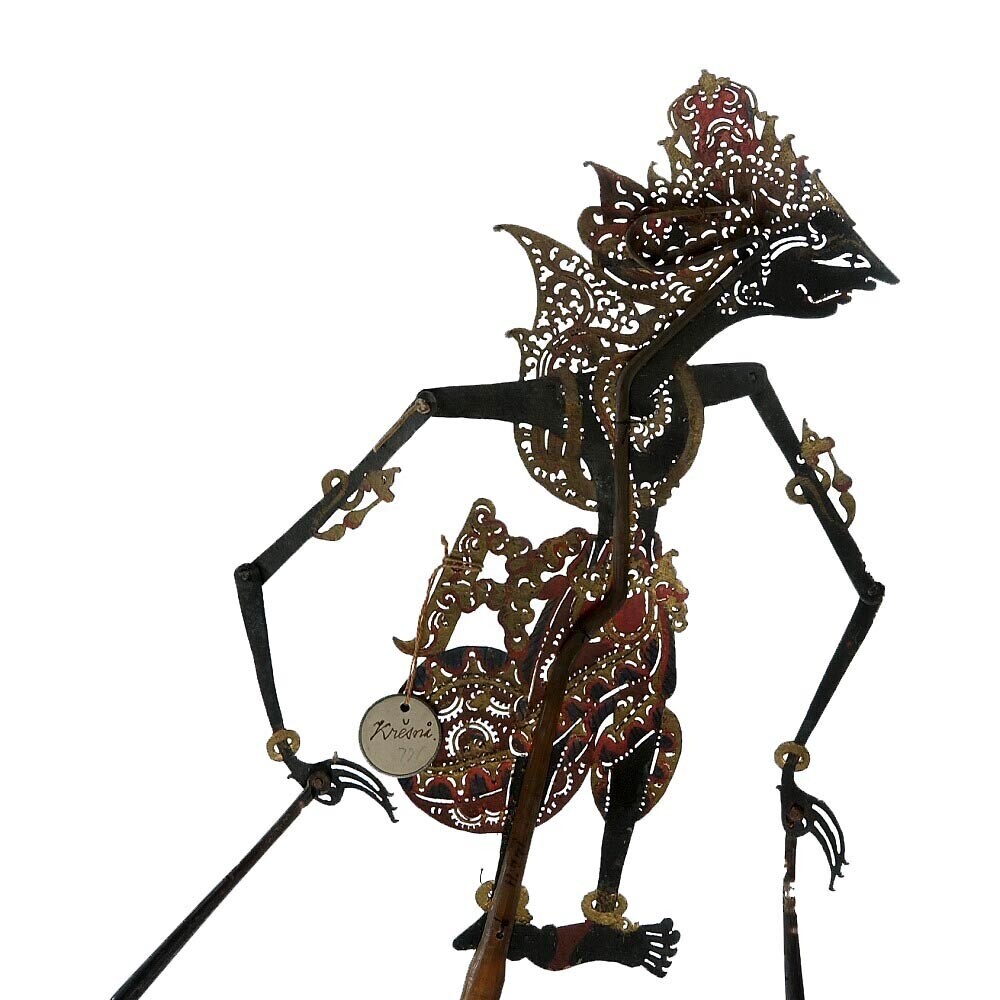 Gesnlen en beschilderd beeld van een wajangfiguur