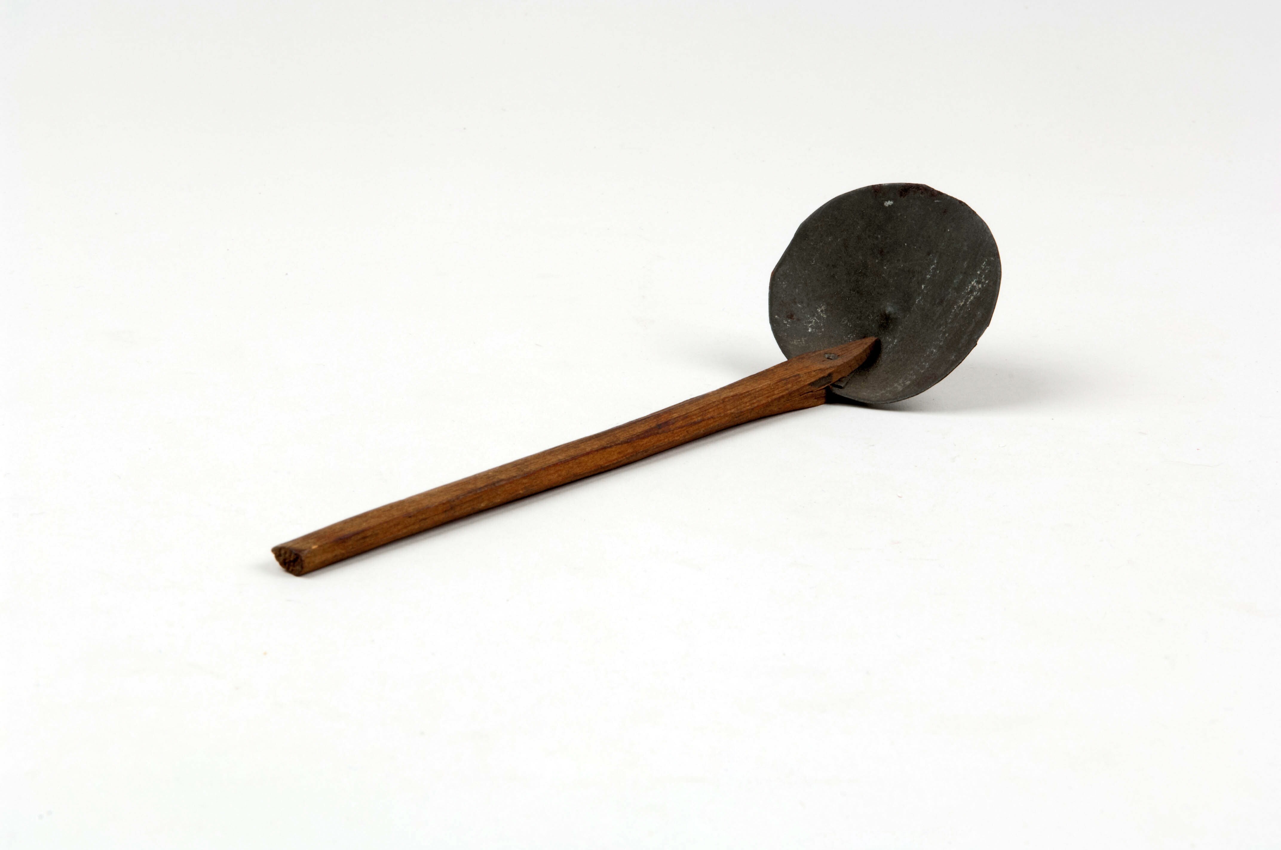 Lepel van blik, gebruikt als kinderspeelgoed