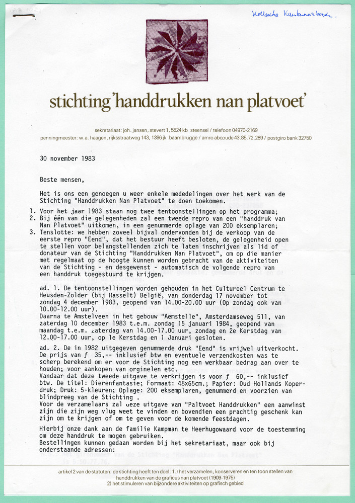 Stichting "Handdrukken Nan Platvoet"