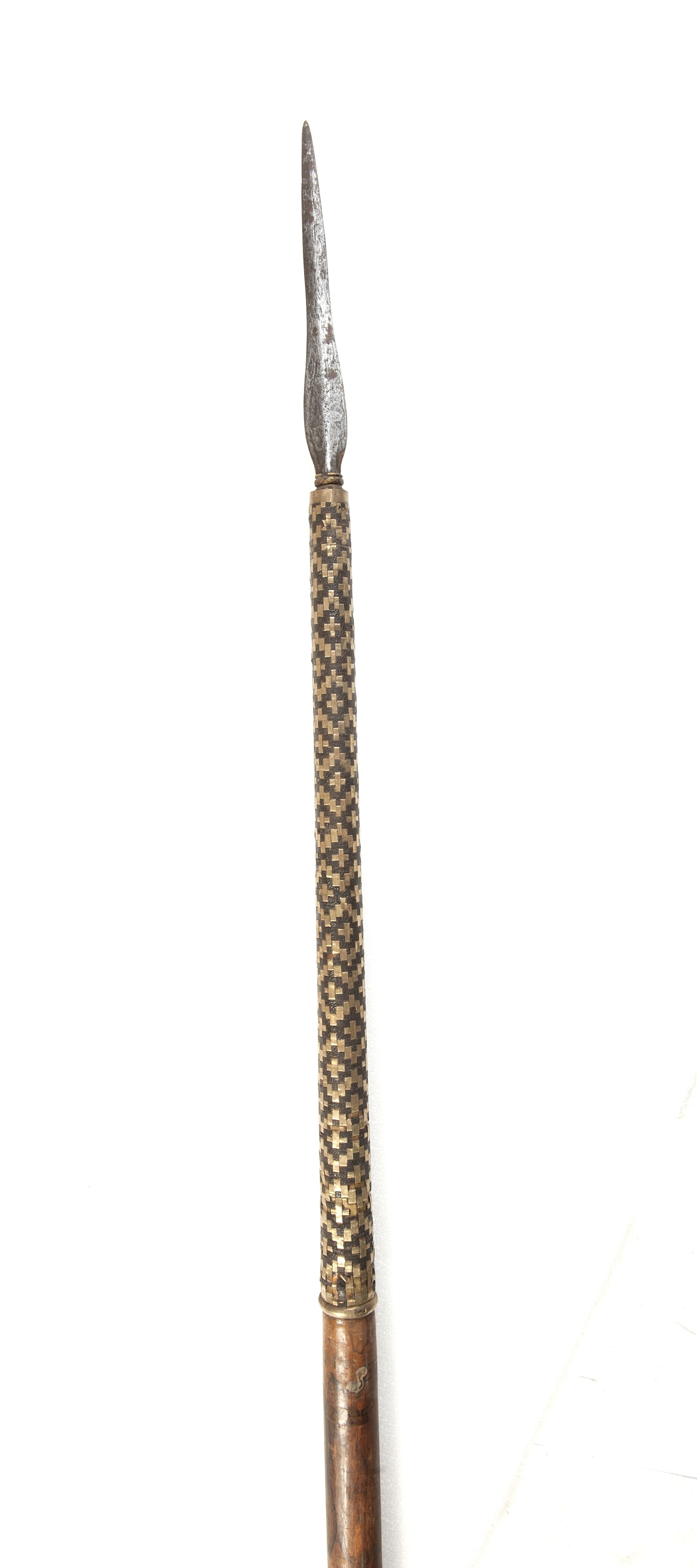 Lans met tongvormig ijzeren punt en schacht van gevl...