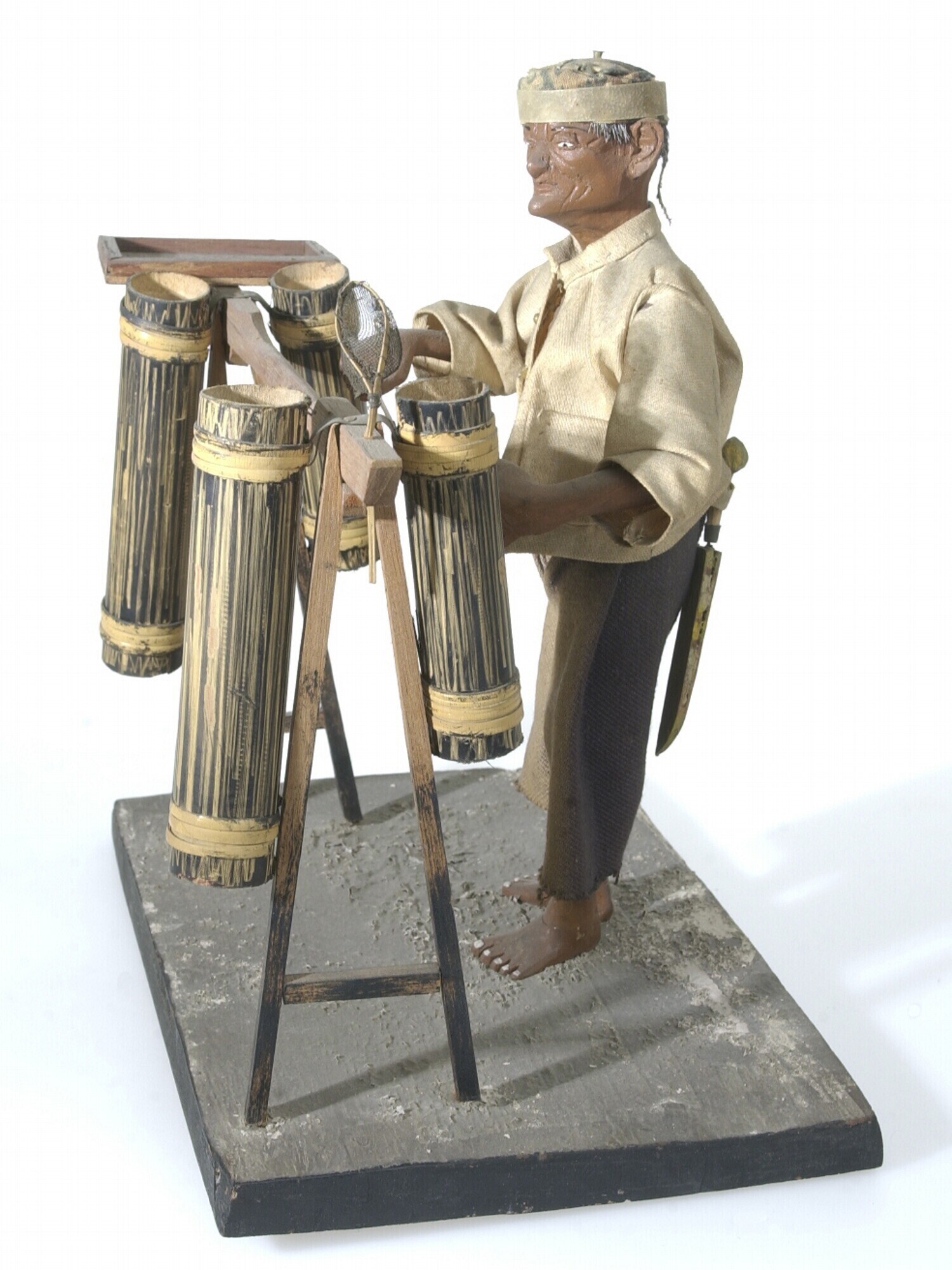Gevlochten sigarenkoker van pandanblad met daarop vo...