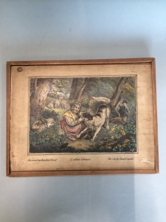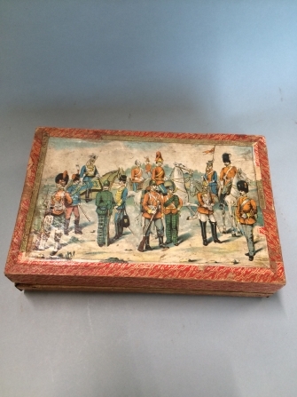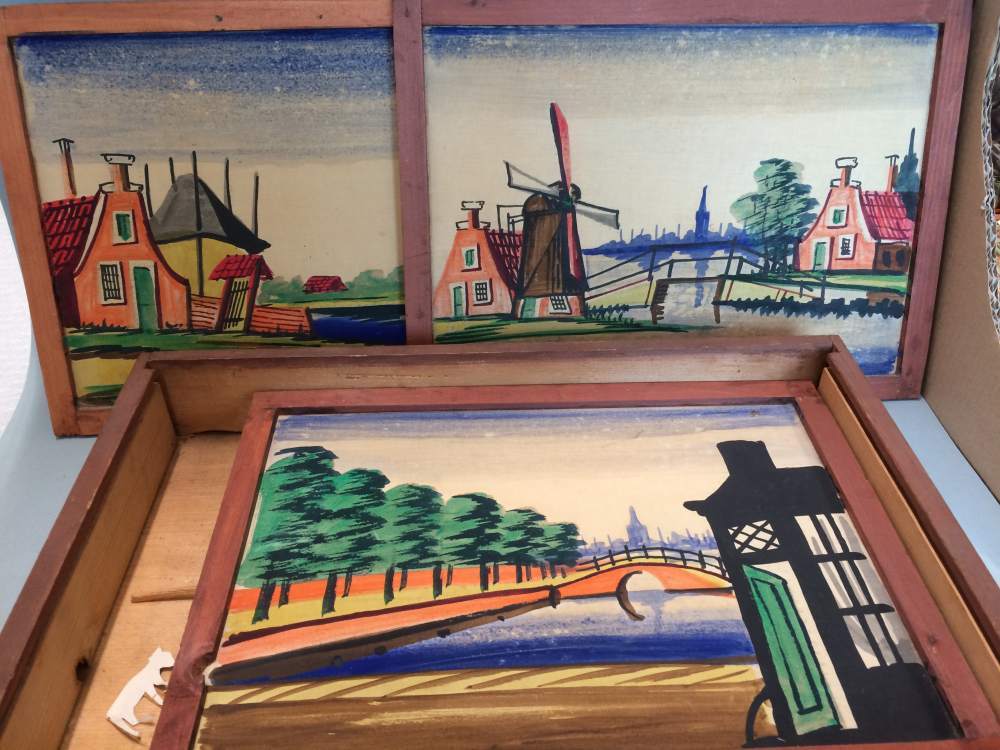 Chinees schimmenspel, vurenhouten doos met schuifdek...